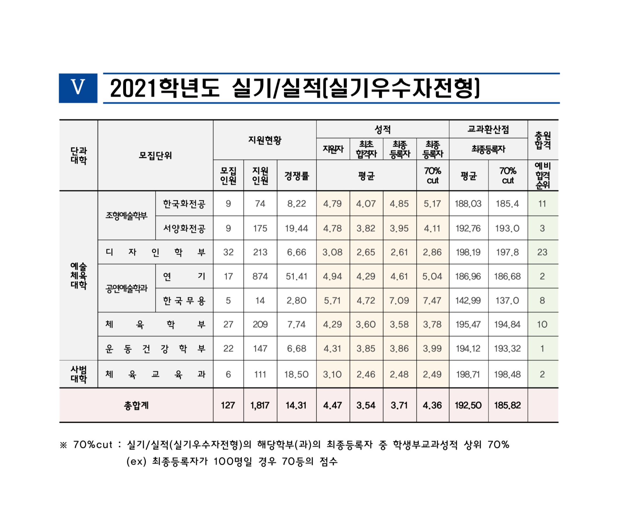 2021학년도 인천대학교 실기/실적(특기자전형) 수시등급