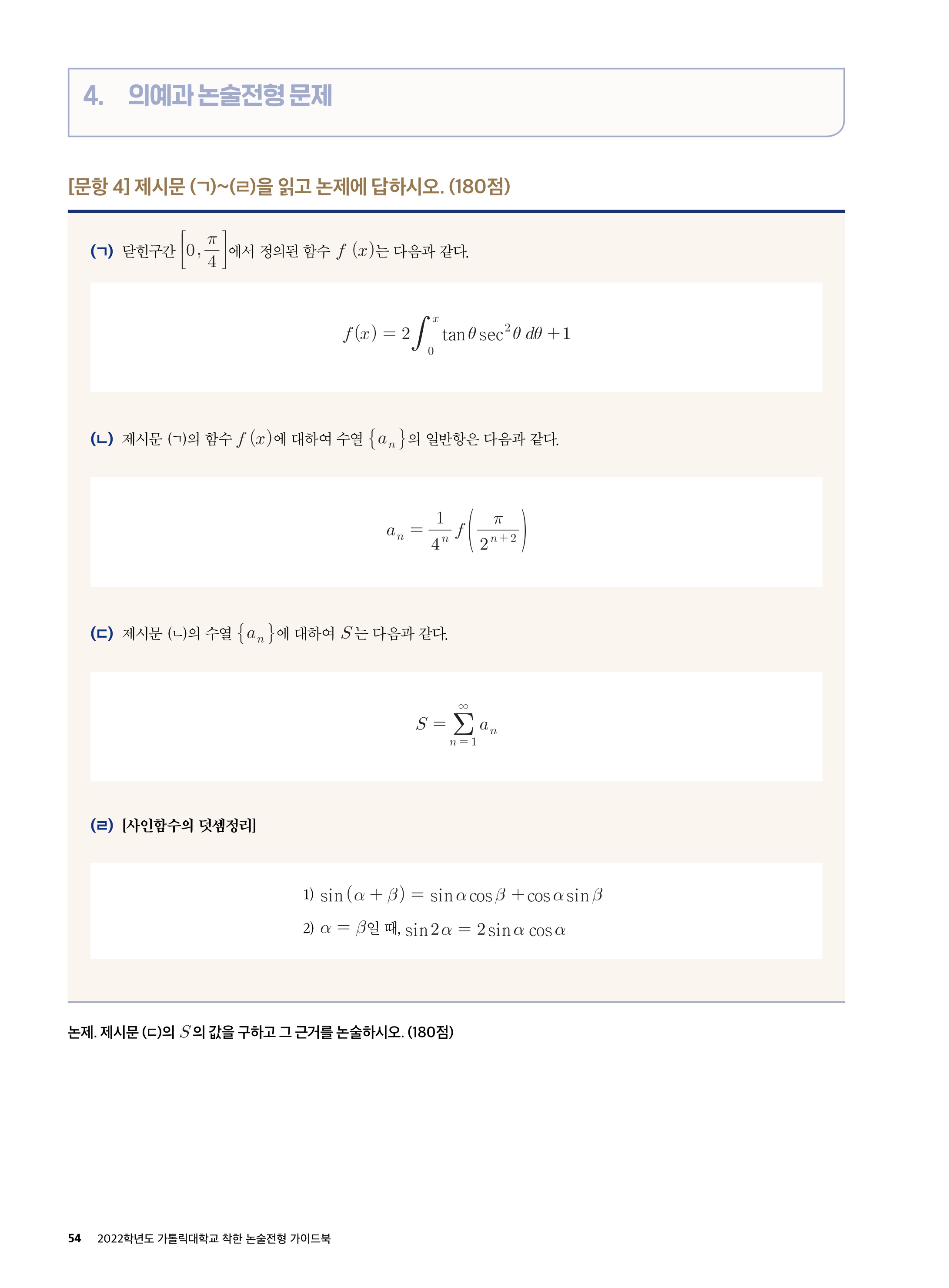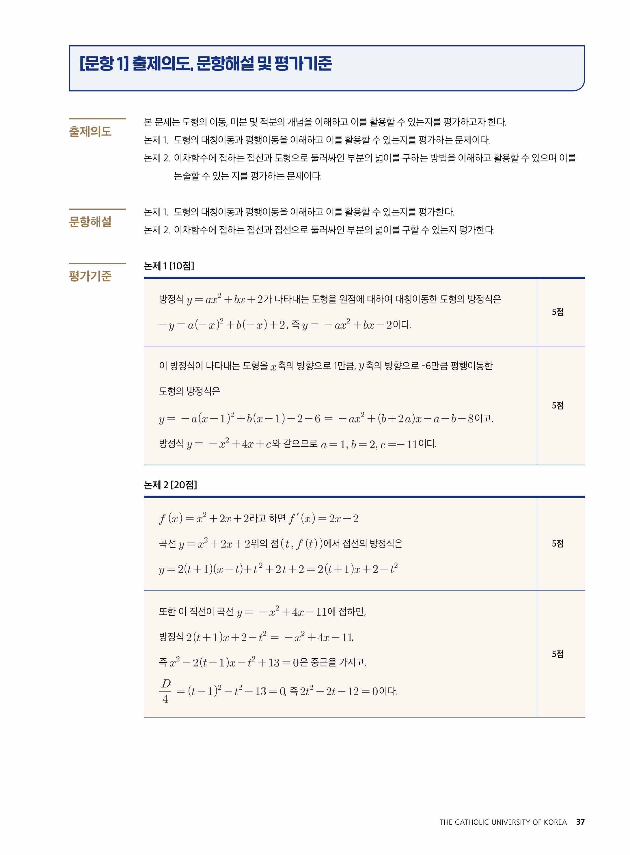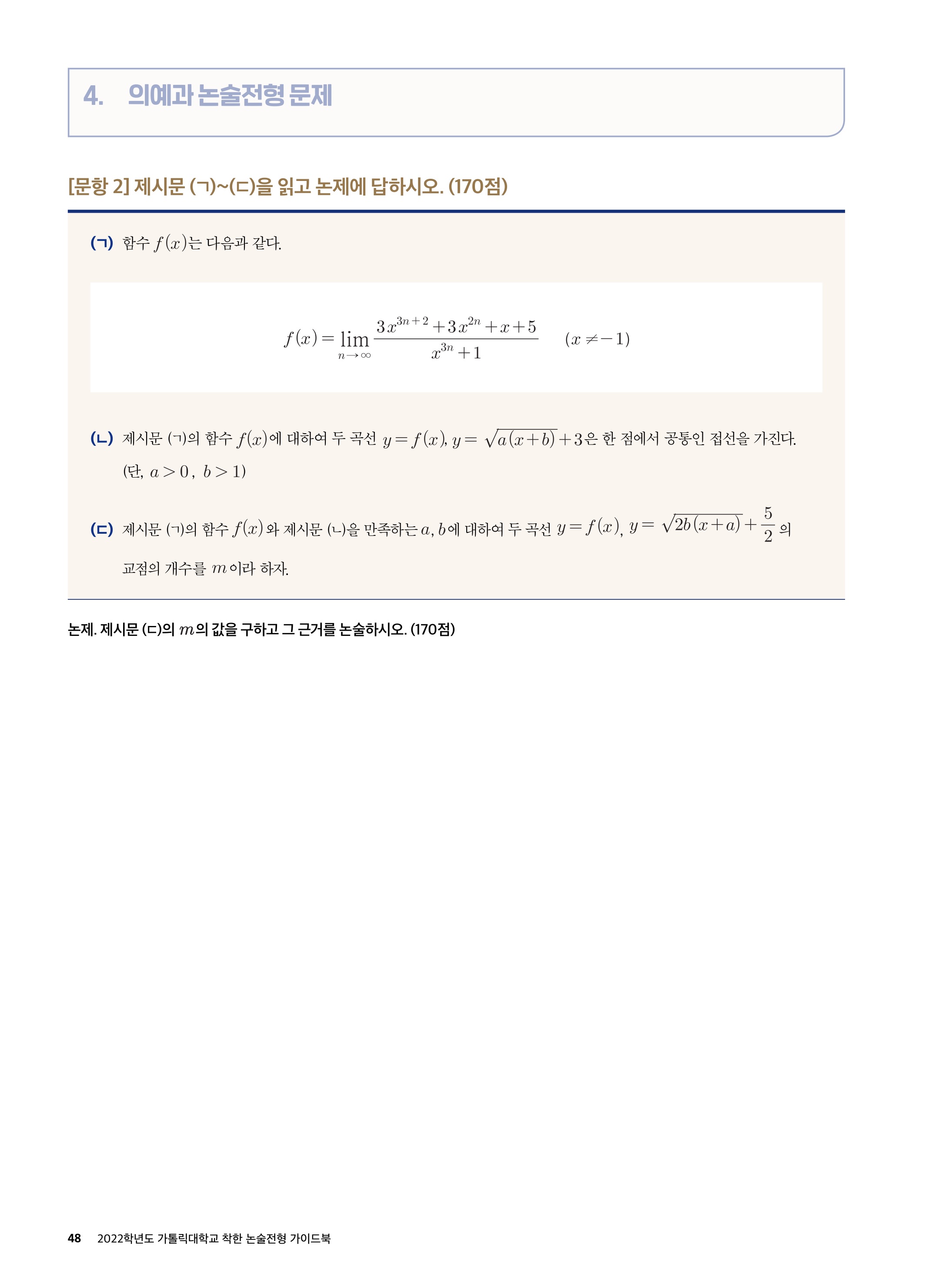 2021학년도 가톨릭대학교 의예과 논술전형 문제 2021학년도 가톨릭대학교 의예과 논술전형 해설