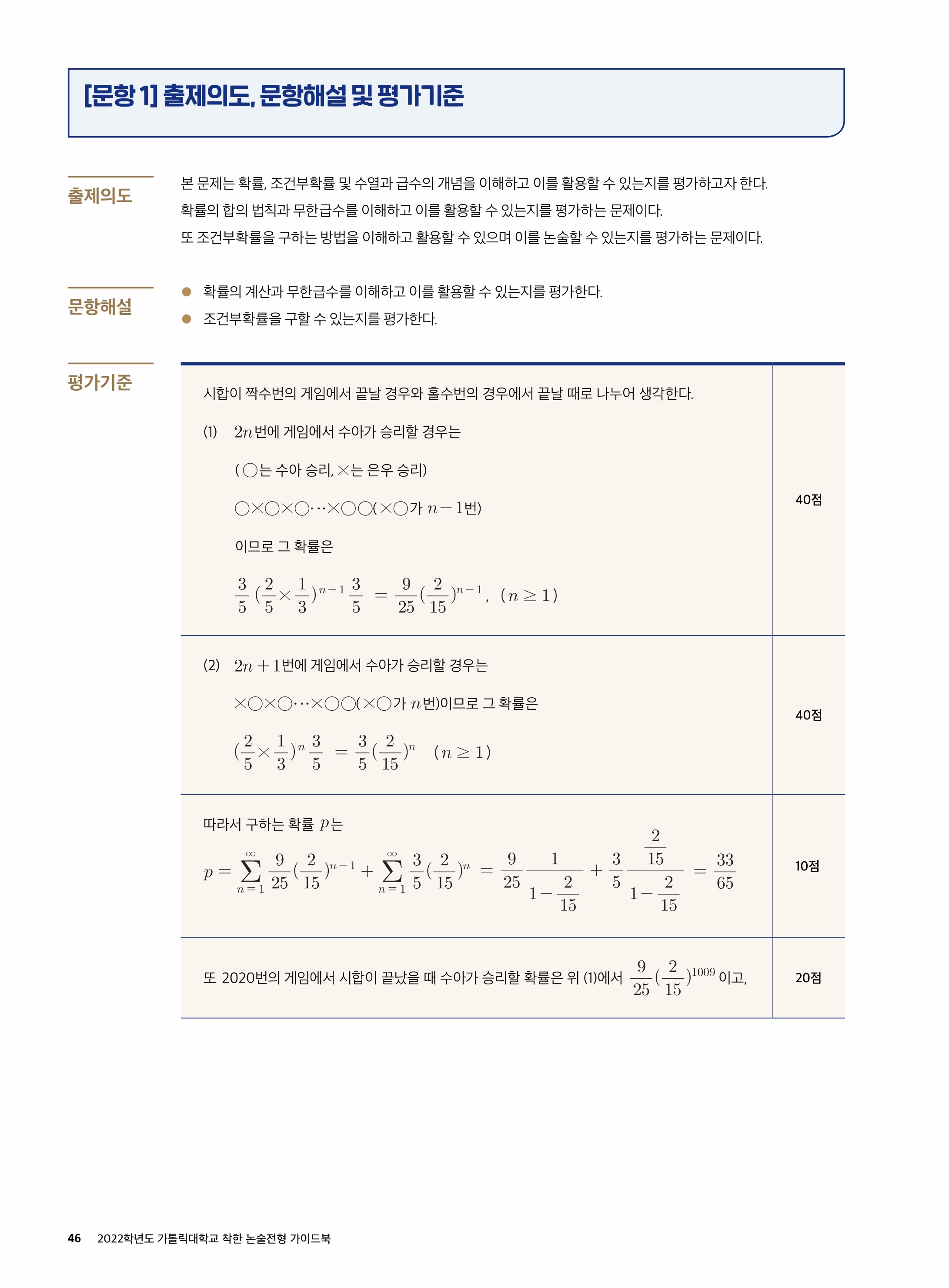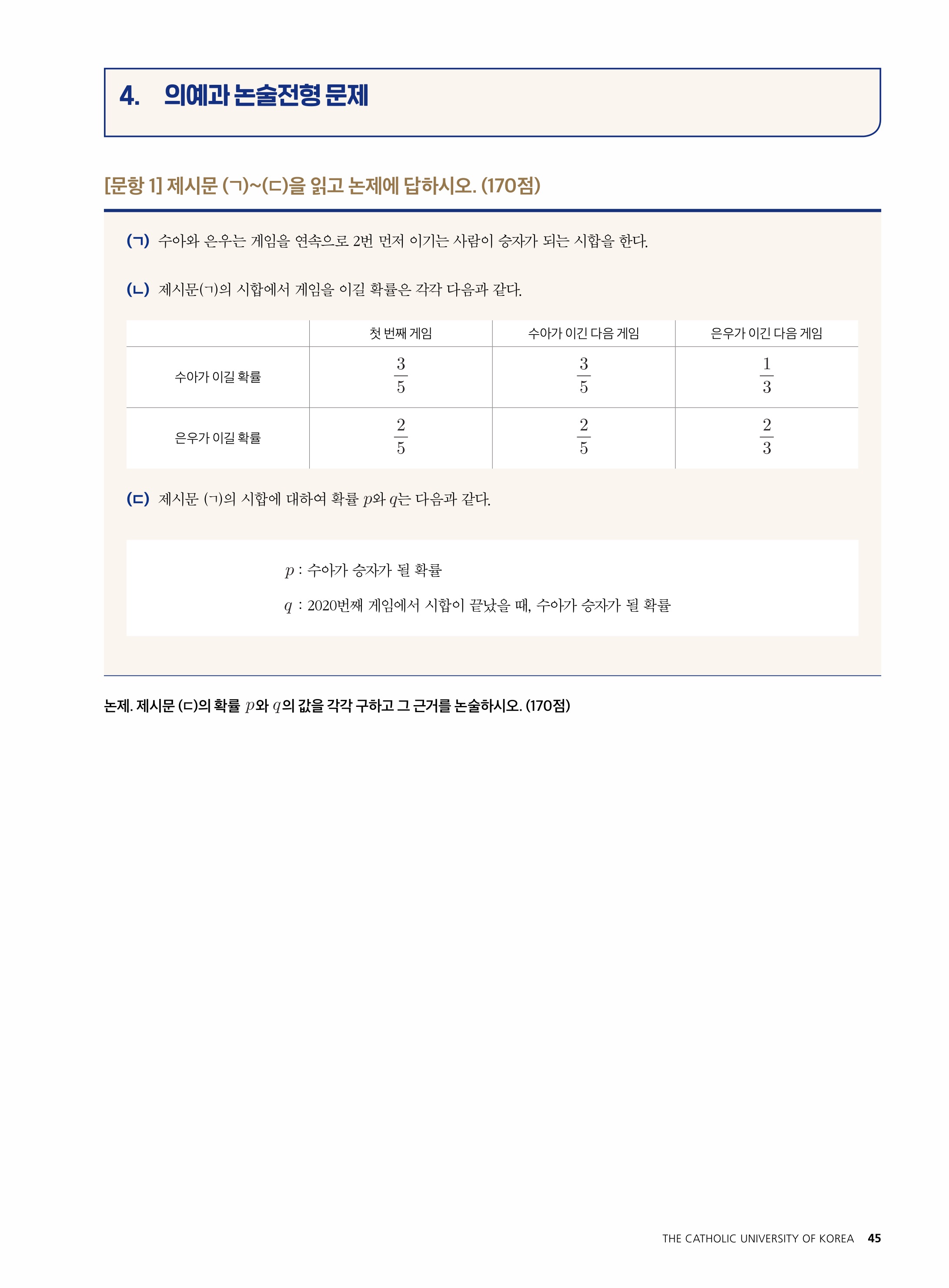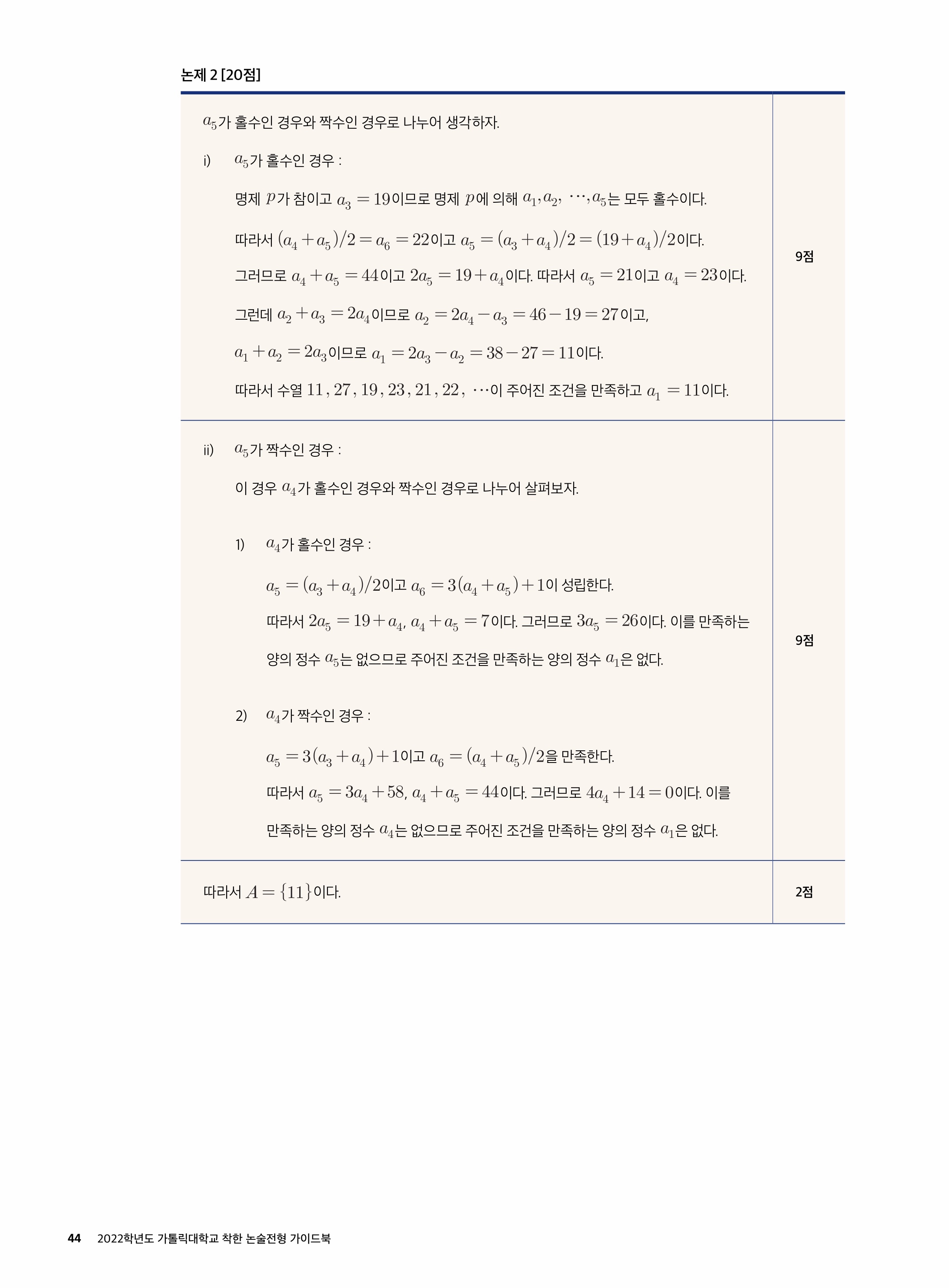 2021학년도 가톨릭대학교 의예과 논술전형 문제 2021학년도 가톨릭대학교 의예과 논술전형 해설