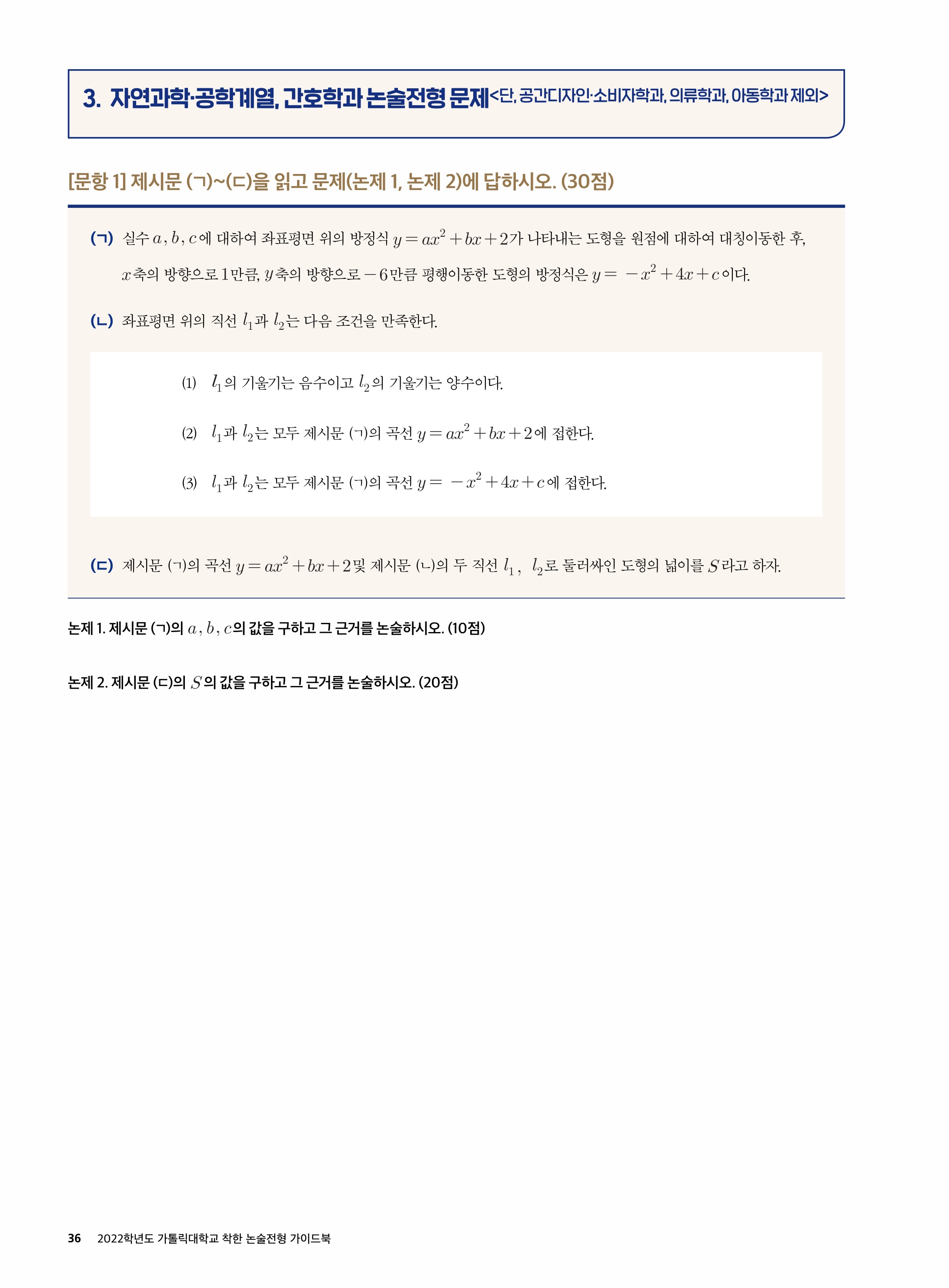 2021학년도 가톨릭대학교 자연과학 공학계열, 간호학과 논술전형 해설