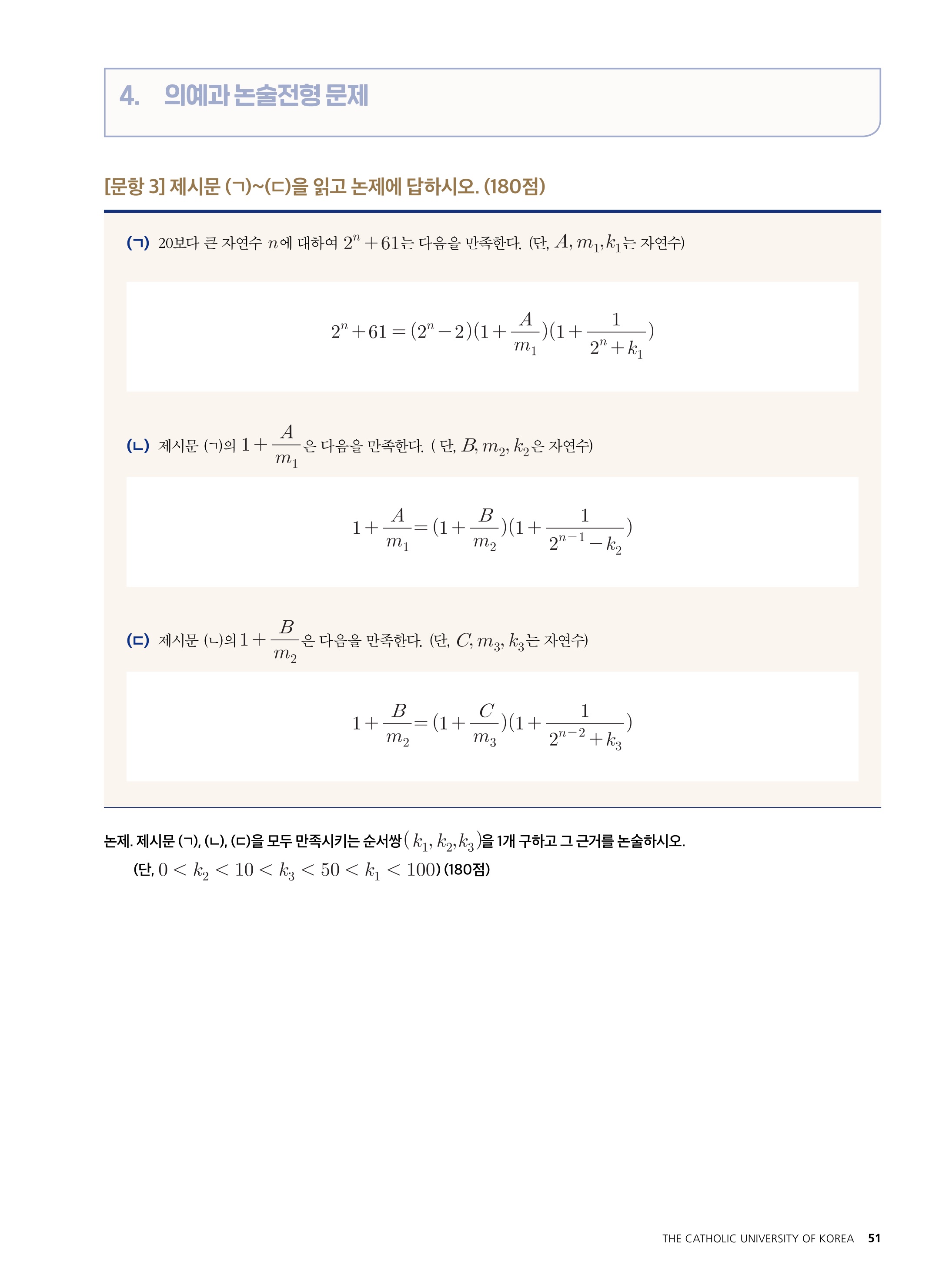 2021학년도 가톨릭대학교 자연과학 공학계열, 간호학과 논술전형 문제 2021학년도 가톨릭대학교 자연과학·공학계열, 간호학과 논술전형 해설