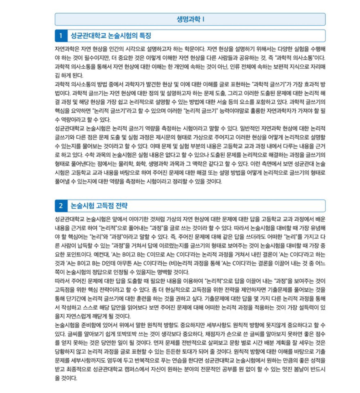 출제위원이 말하는 성균관대학교 논술 - 화학Ⅰ 출제위원이 말하는 성균관대학교 논술 - 생명과학Ⅰ