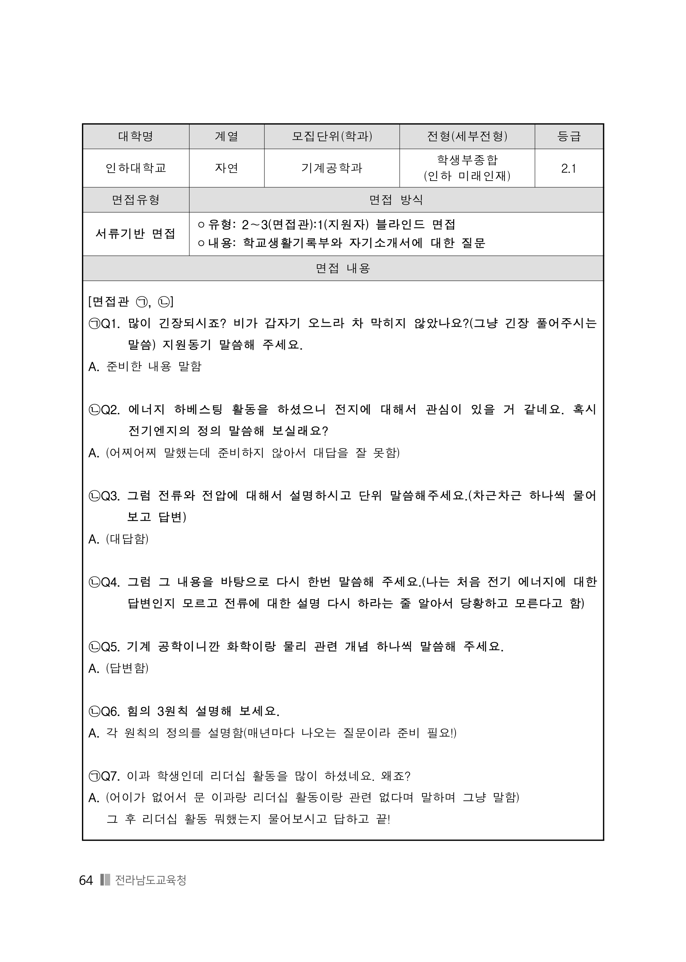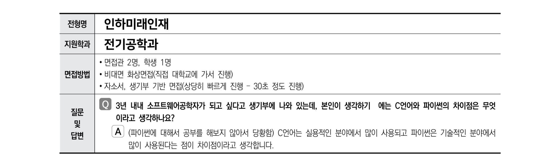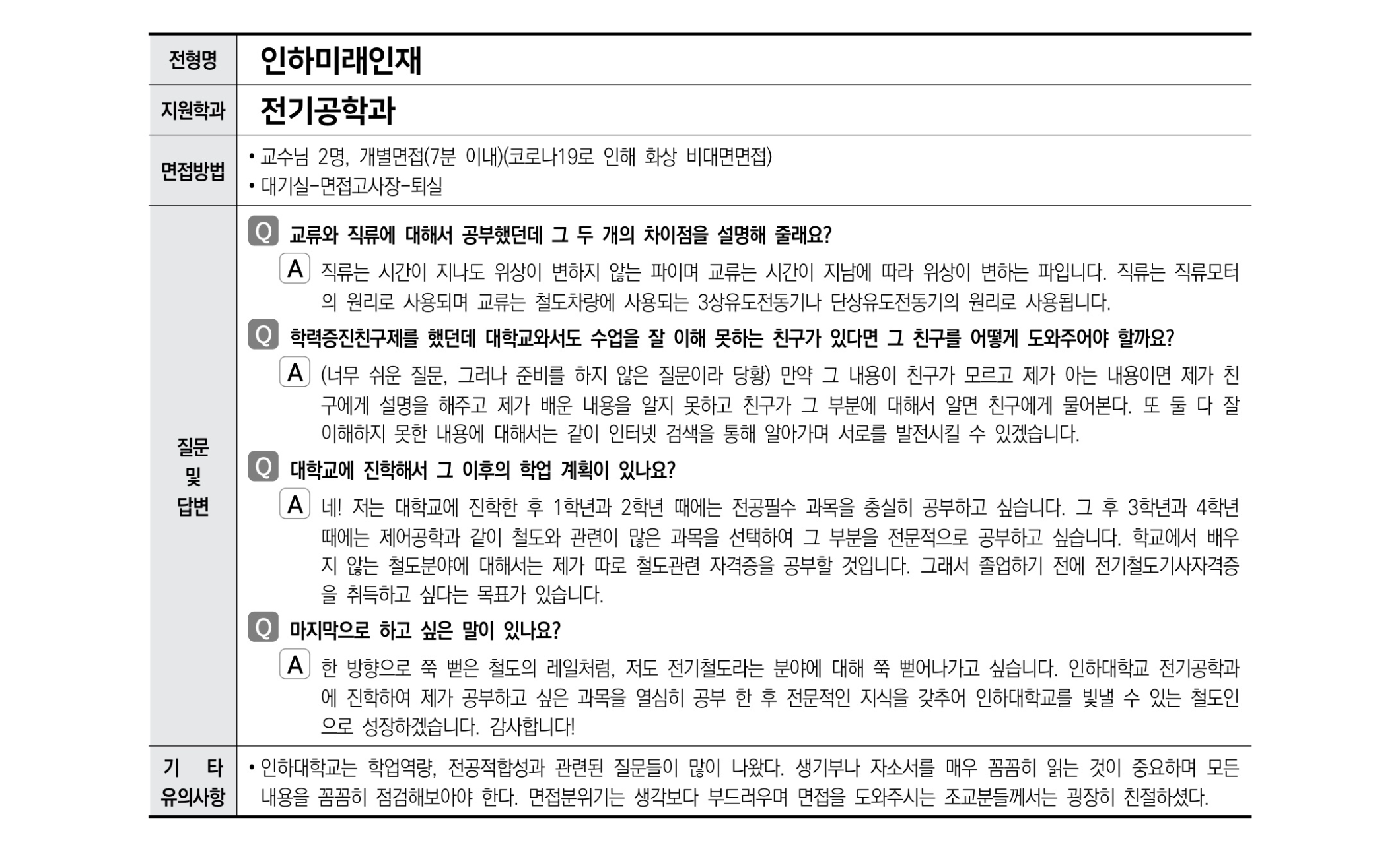 2021학년도 인하대학교 면접 후기19 - 전기공학과