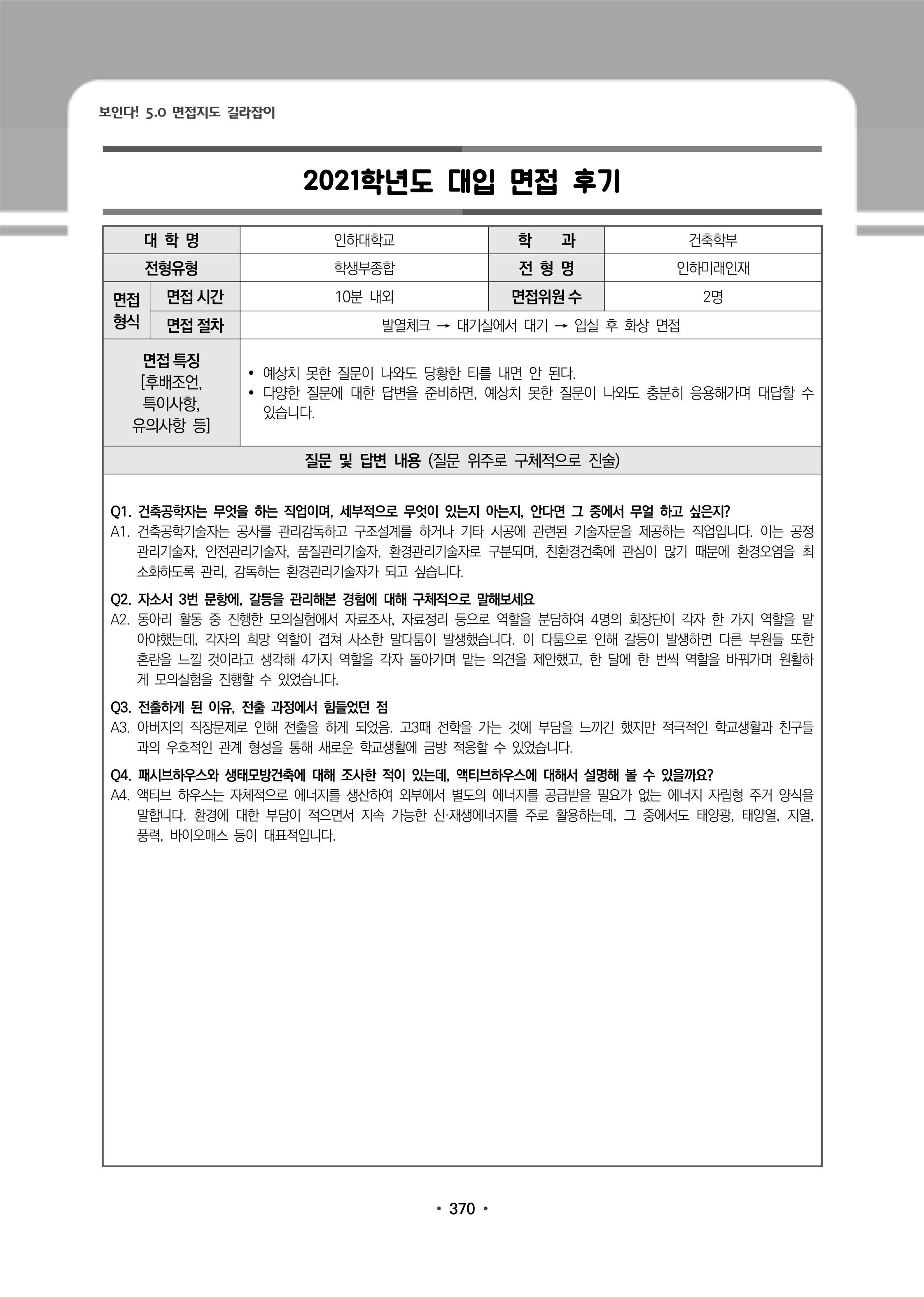 인하대학교 화학과2021학년도 인하대학교 면접 후기1 - 건축학부