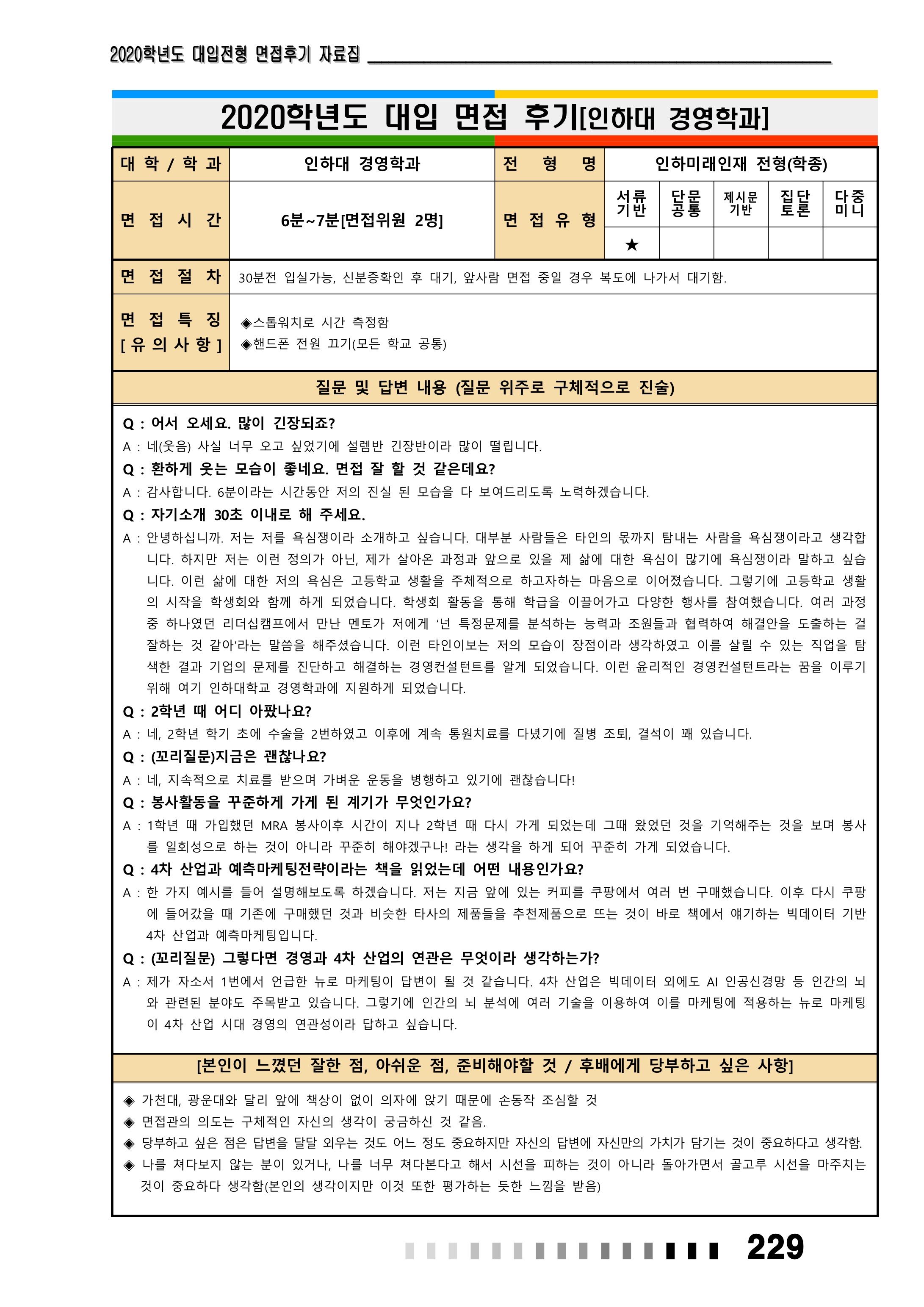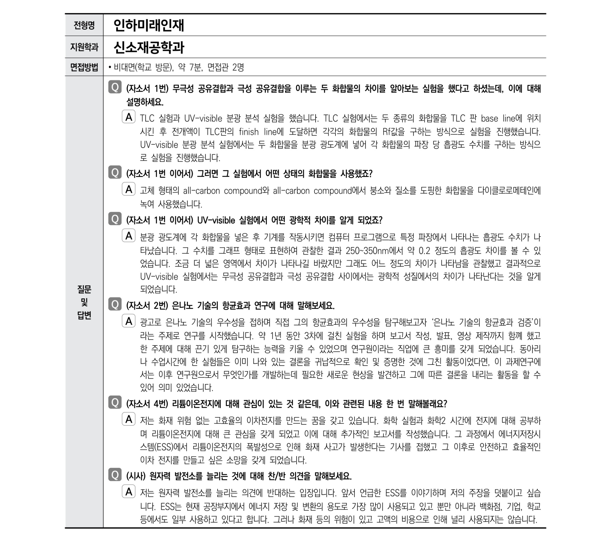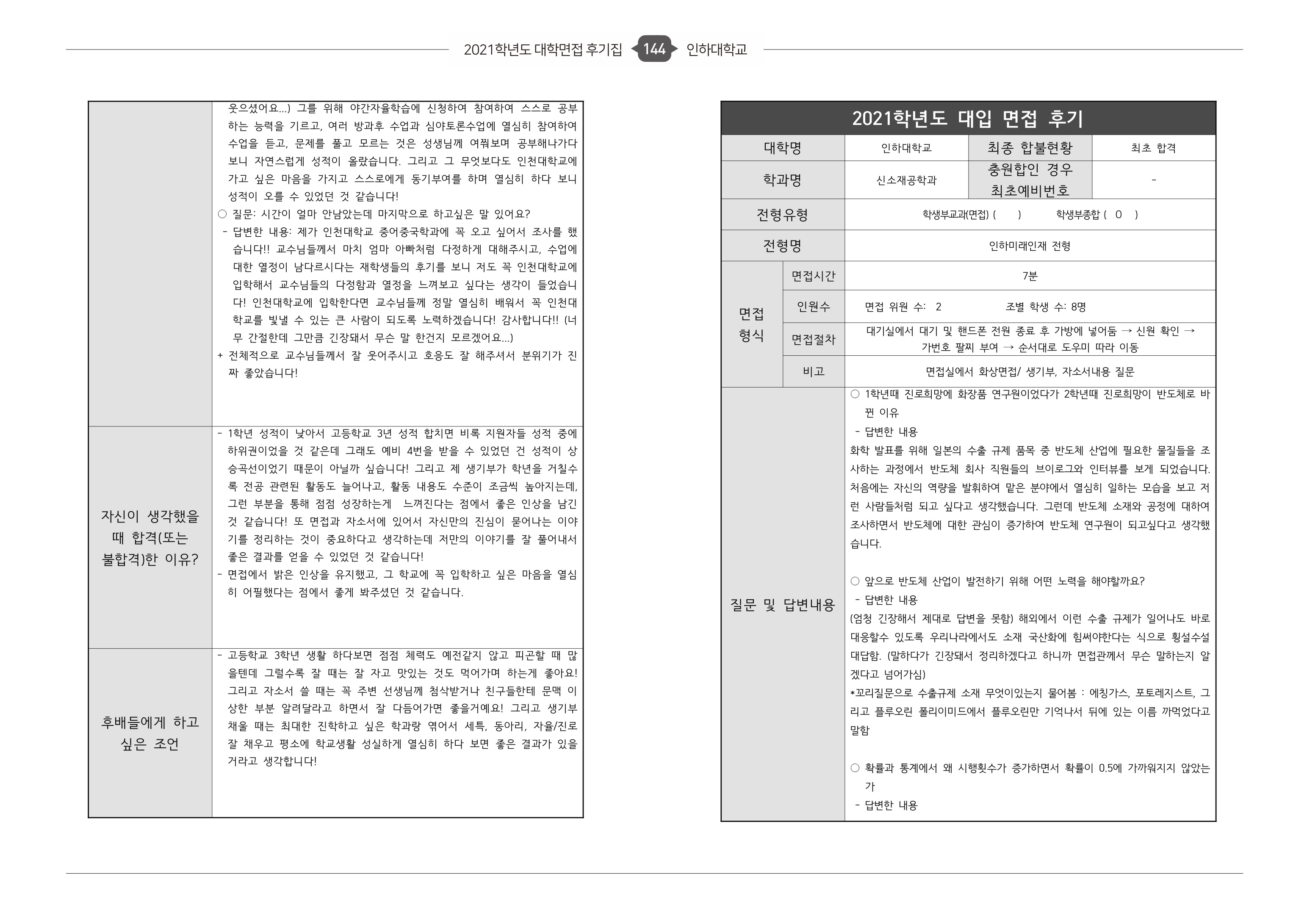 2021학년도 인하대학교 면접 후기15 - 신소재공학과