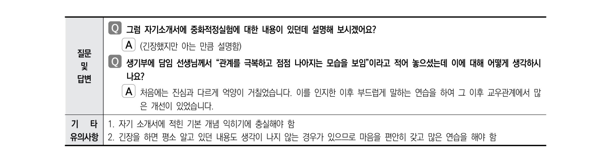 - 단점을 해결하기 위해 노력한 점을 이야기해 보세요.