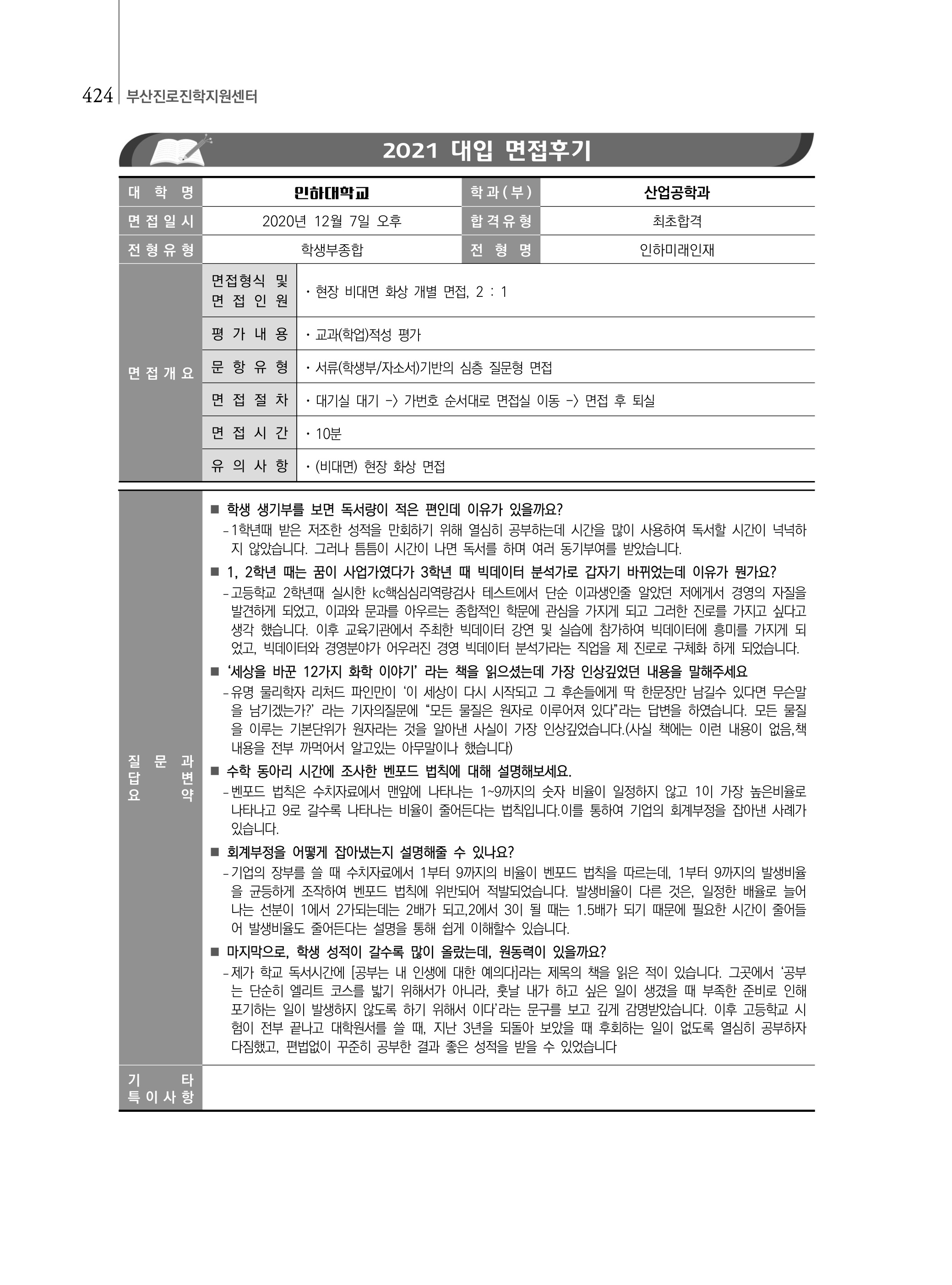 2021학년도 인하대학교 면접 후기11 - 사회인프라공학과 2021학년도 인하대학교 면접 후기12 - 산업공학과