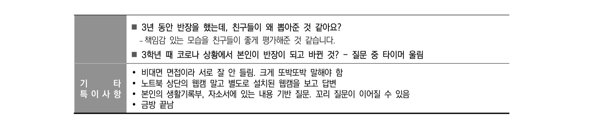 2021학년도 수시 면접 기출 사례