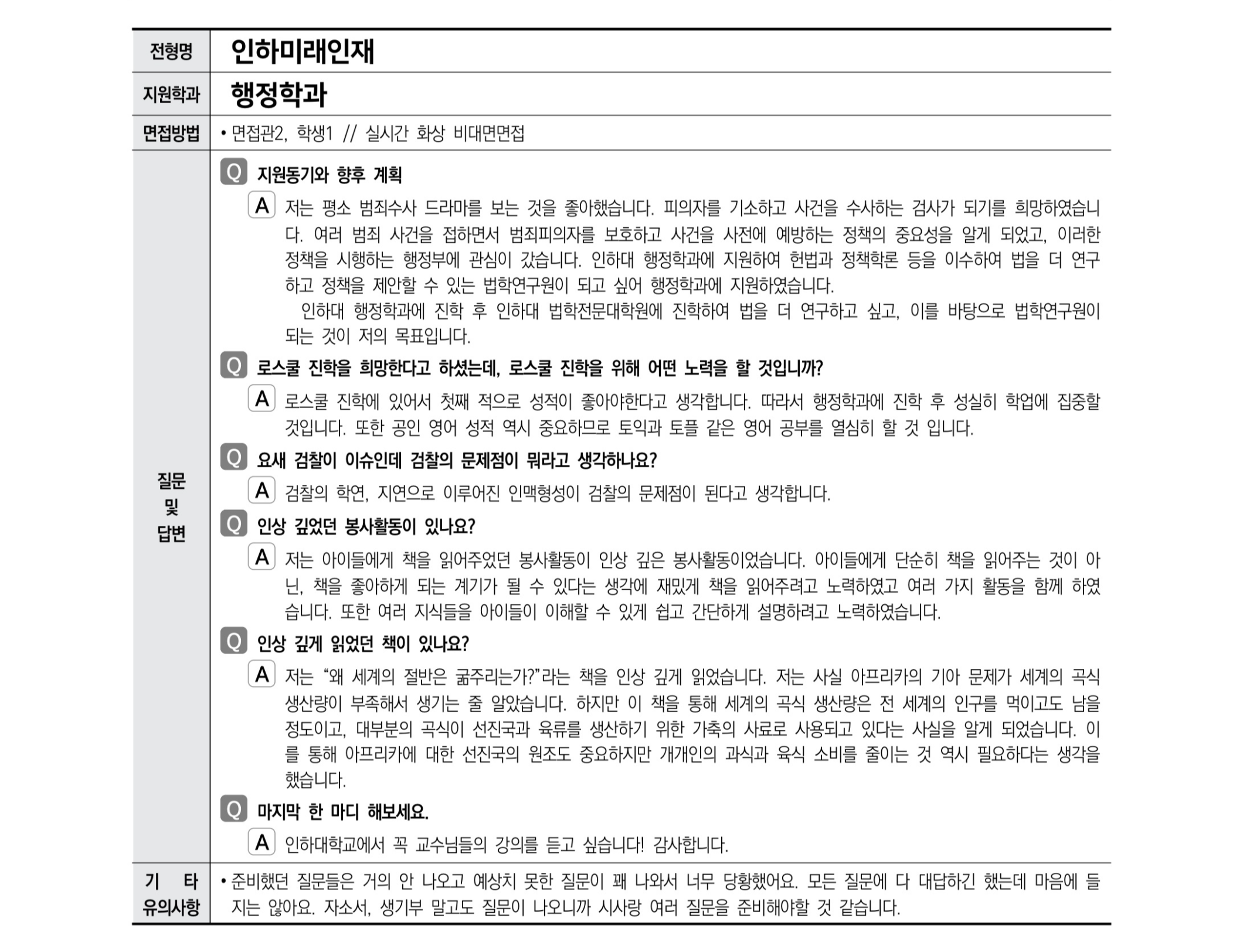 2021학년도 인하대학교 면접 후기26 - 항공우주공학과 2021학년도 인하대학교 면접 후기27 - 행정학과