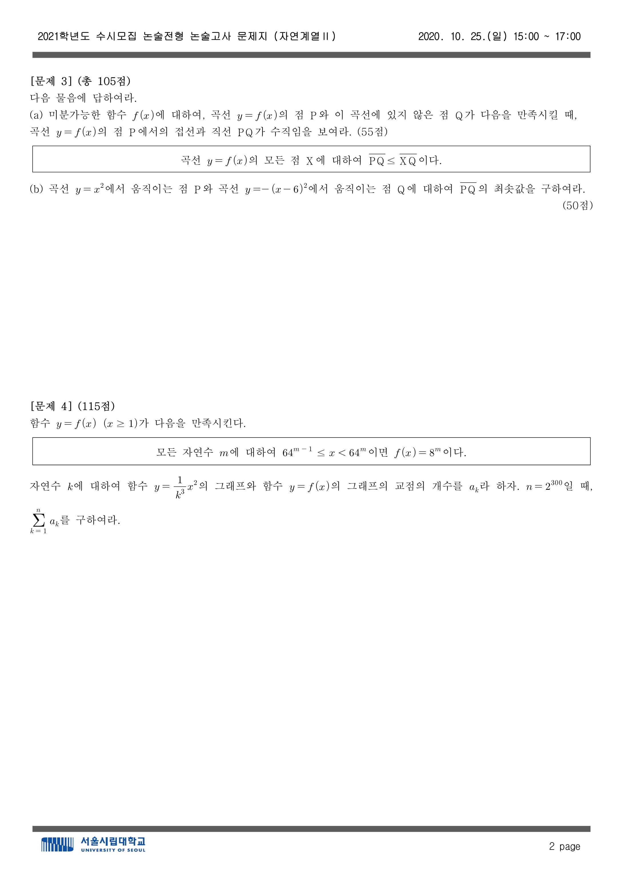 2021학년도 서울시립대학교 논술고사 문제지 (자연계열Ⅱ)