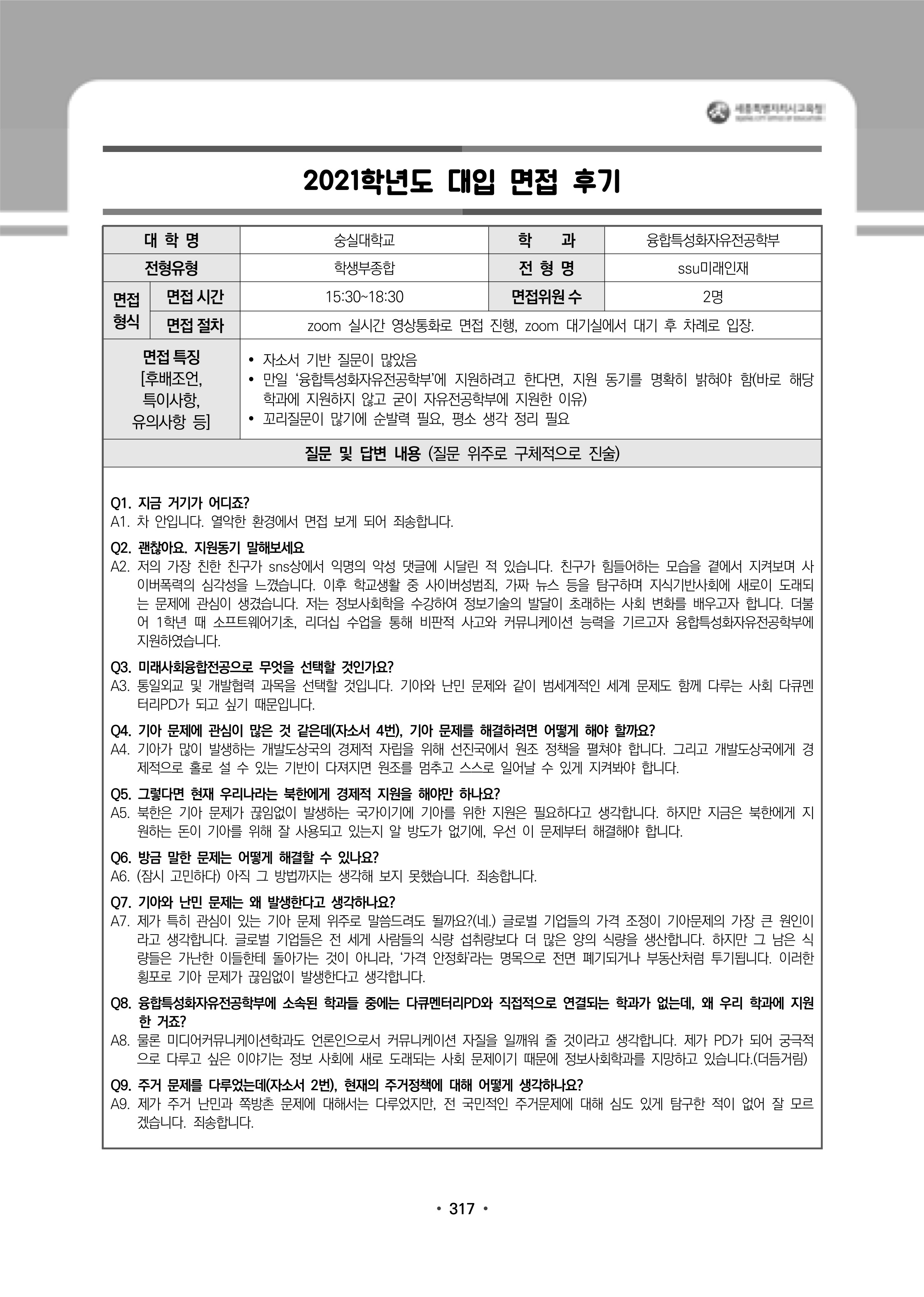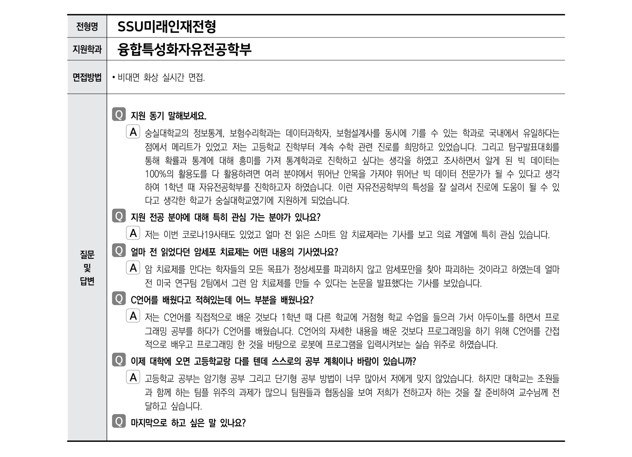 2021학년도 숭실대학교 면접 후기15 - 융합특성화자유전공학부