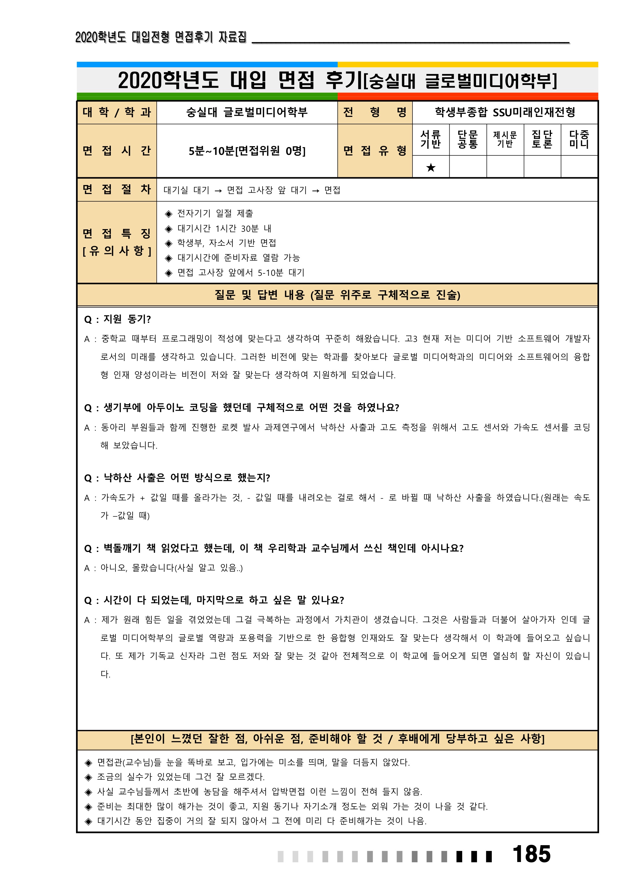 2021학년도 숭실대학교 면접 후기5 - 글로벌미디어학부 2021학년도 숭실대학교 면접 후기6 - 글로벌미디어학부