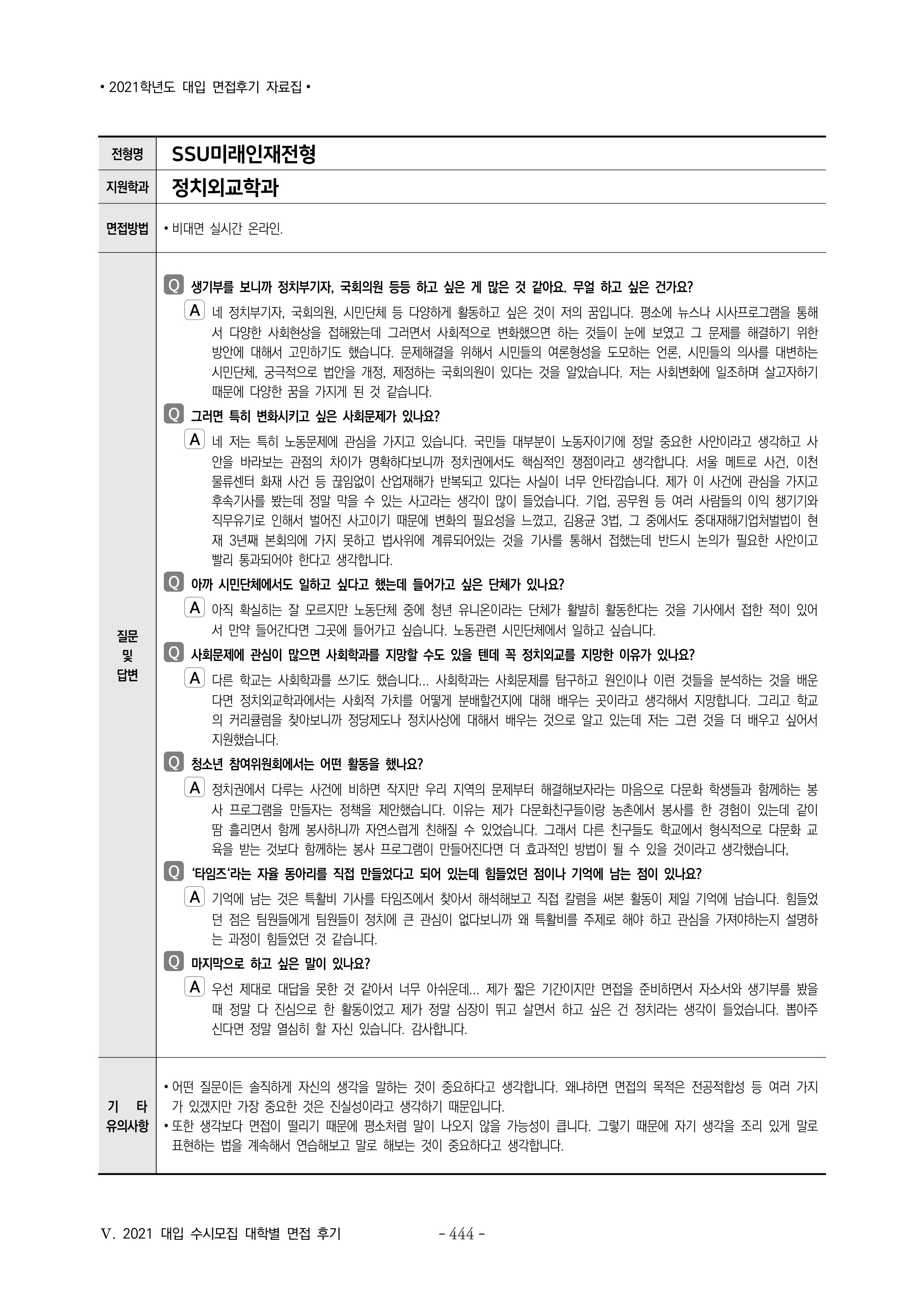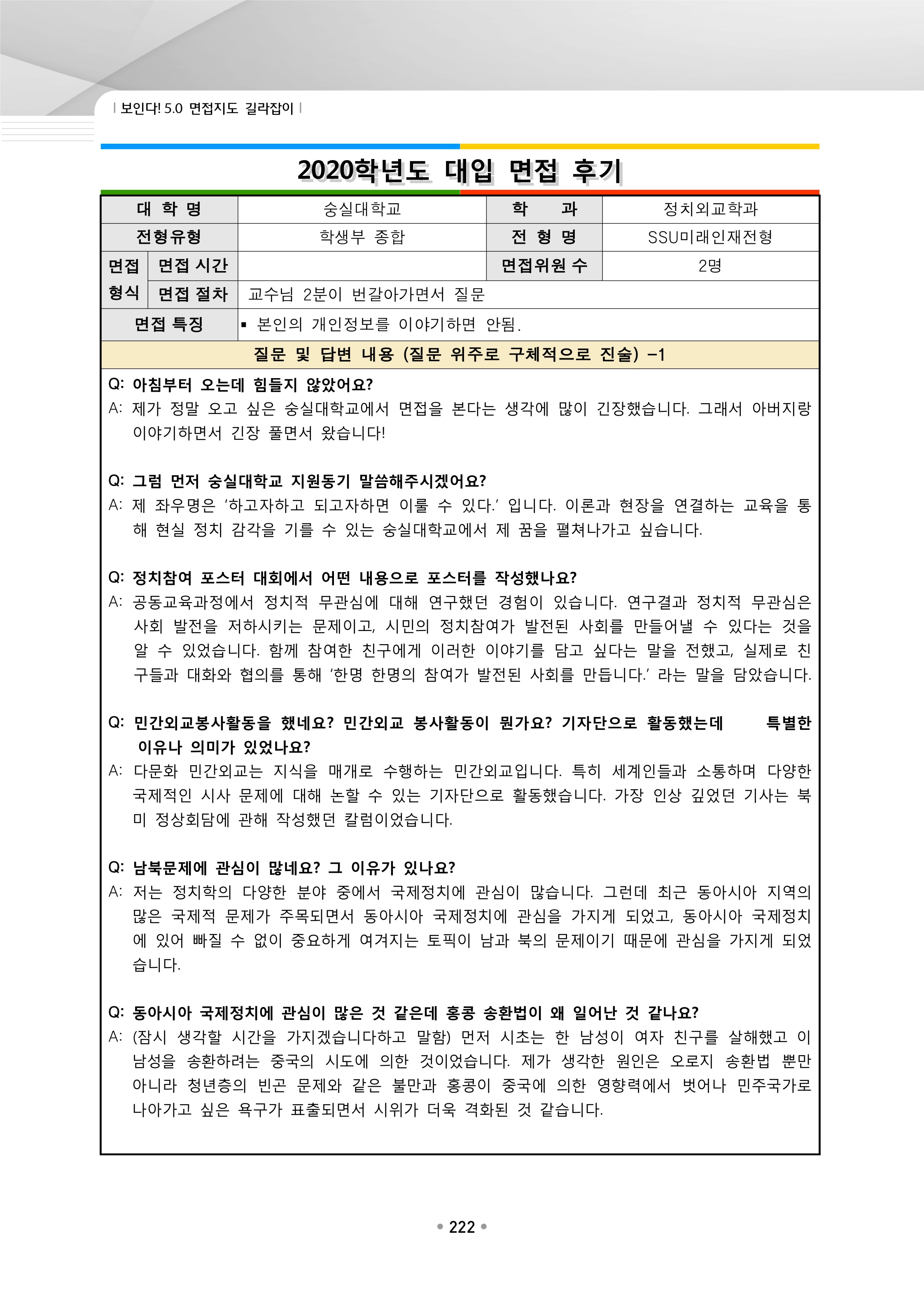2021학년도 숭실대학교 면접 후기22 - 정치외교학과