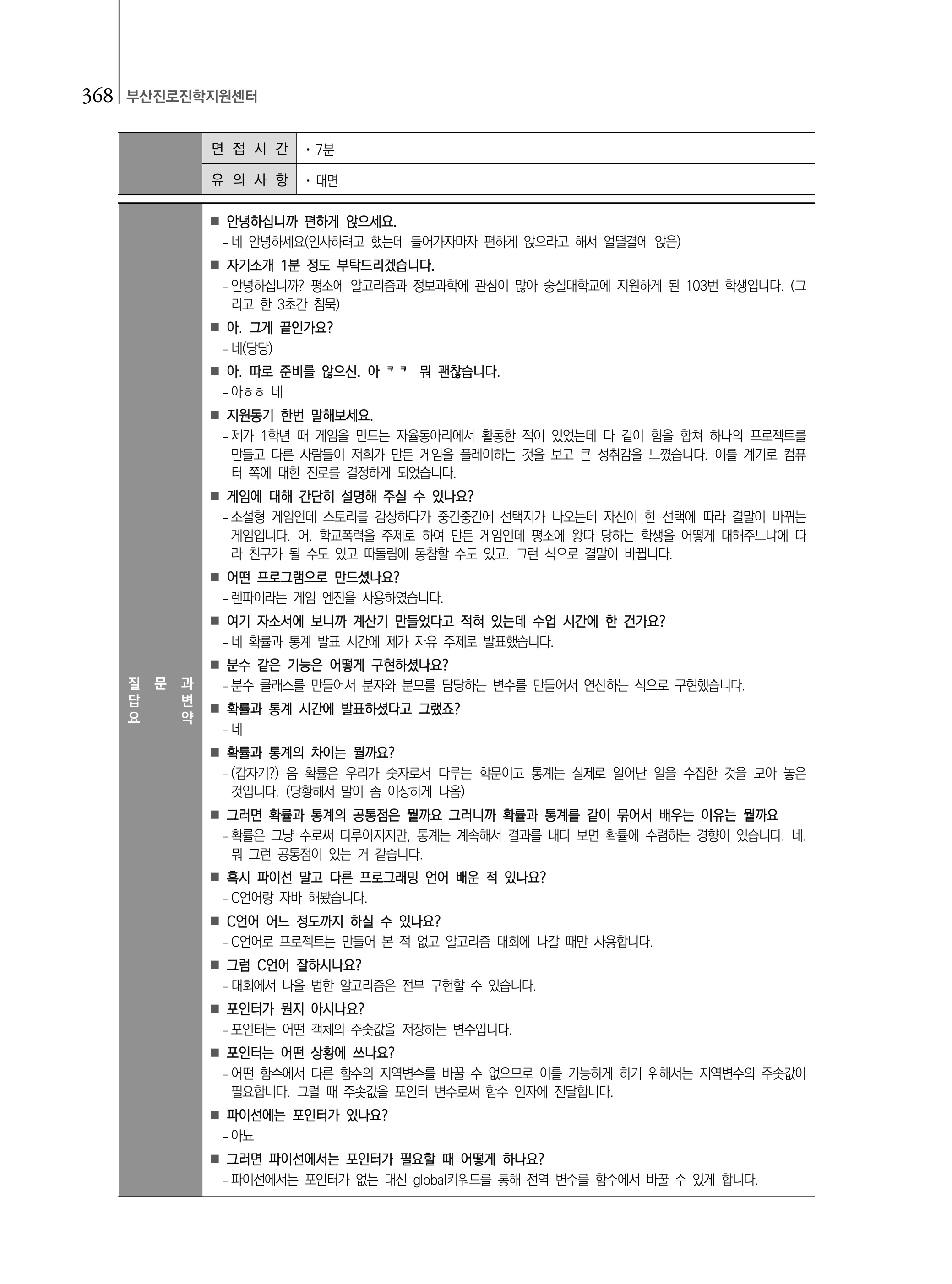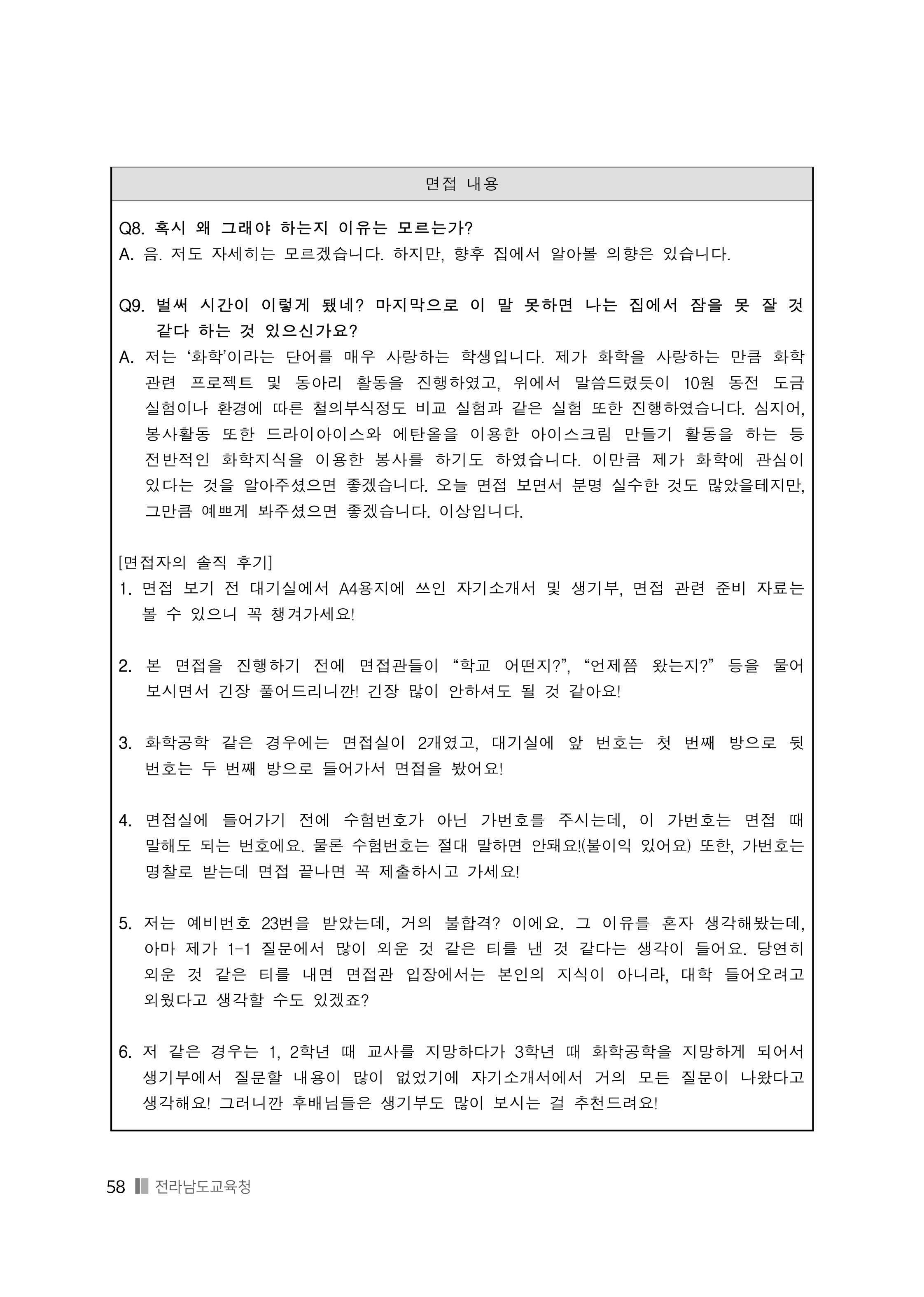 (1) 학생부종합전형 면접고사의 경우 제출 서류 자기소개서 학교생활기록부를 기반으로 전공적합성 인성 잠재력을 평가하는 서류 기반 면접으로 교과지식 이외의 내용을 묻는 면접임