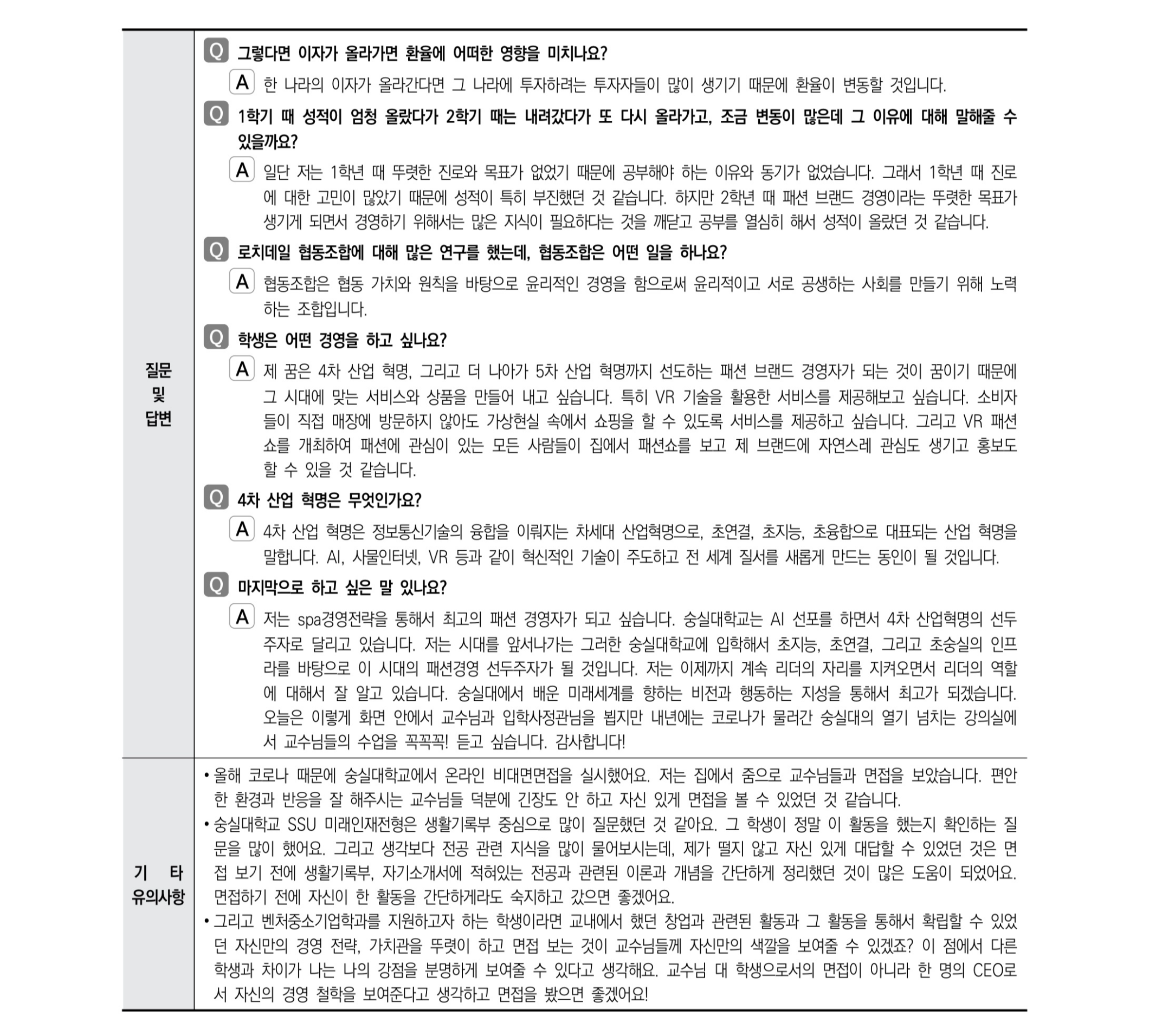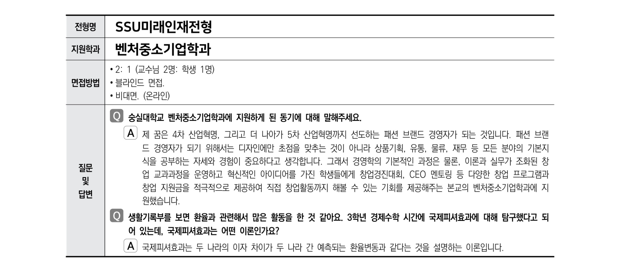 2021학년도 숭실대학교 면접 후기13 - 벤처중소기업학과