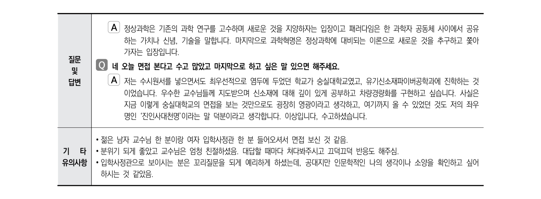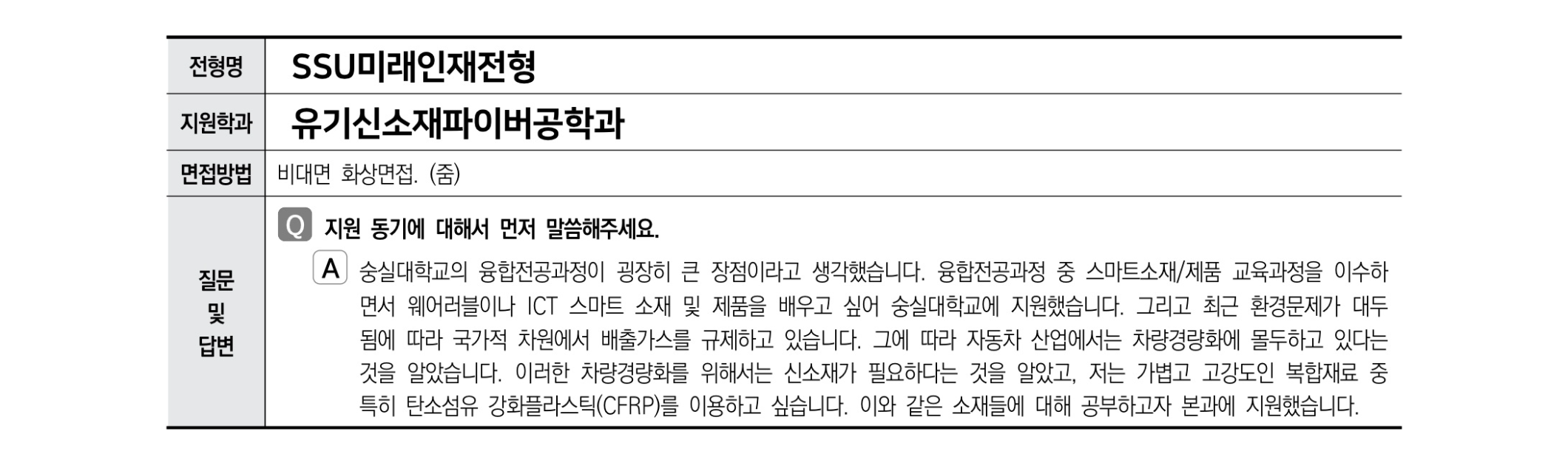 2021학년도 숭실대학교 면접 후기14 - 유기신소재파이버공학과