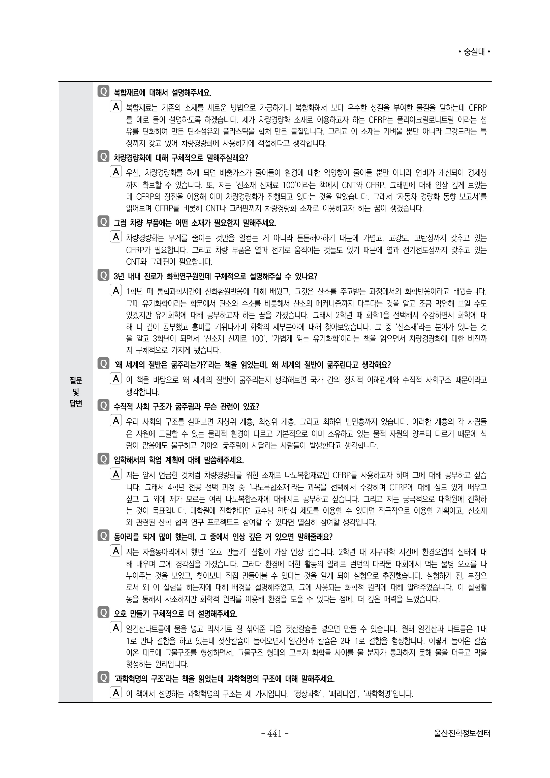 (예5) 교내 프로그래밍 경험이 많은데, ○○알고리즘에 대해 설명해보세요, 로봇의 작동 원리에 대해 설명해보세요.- 전반적인 성적보다 ○○교과 성적이 좋은데(혹은 나쁜데) 이유가 있나요?