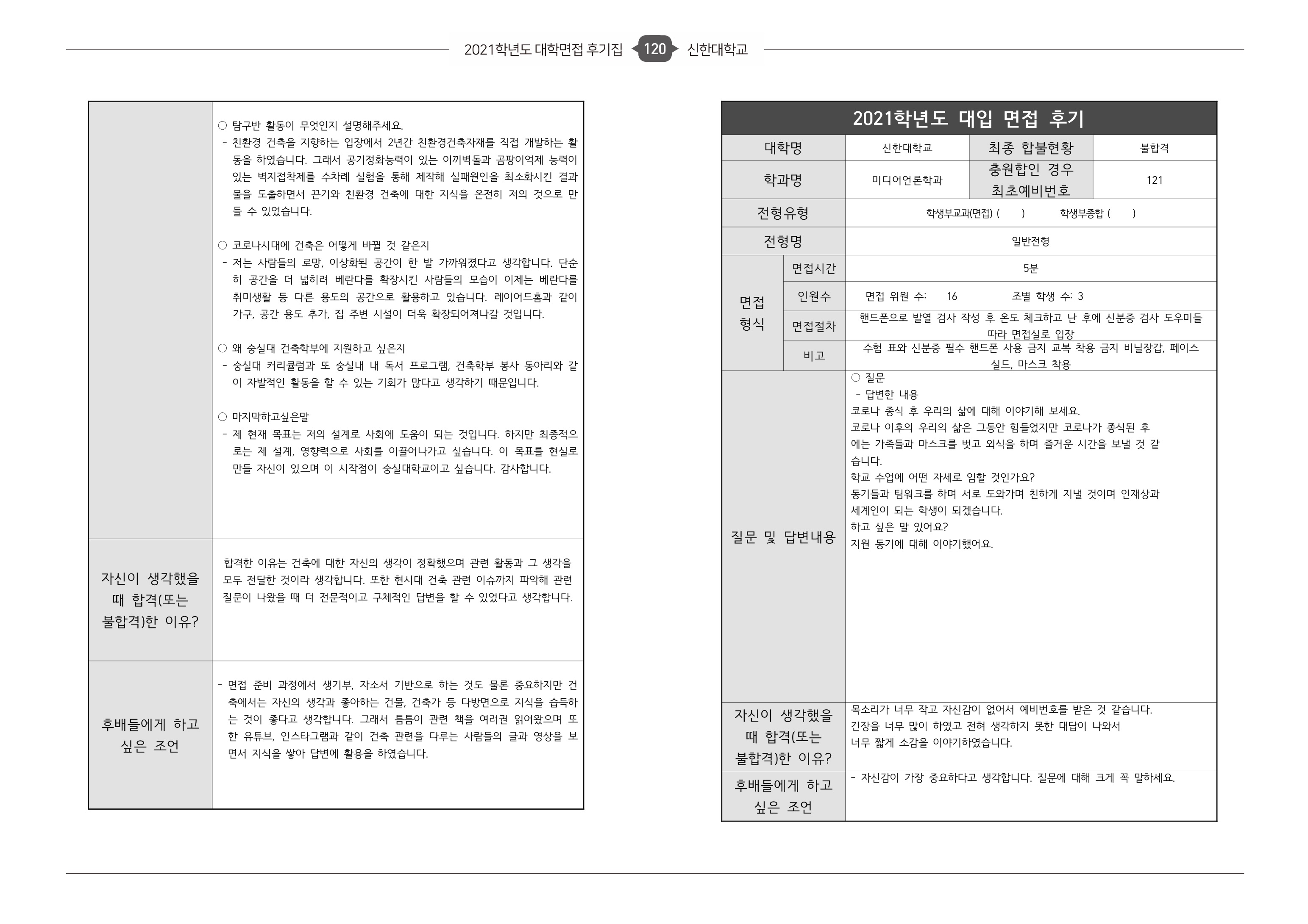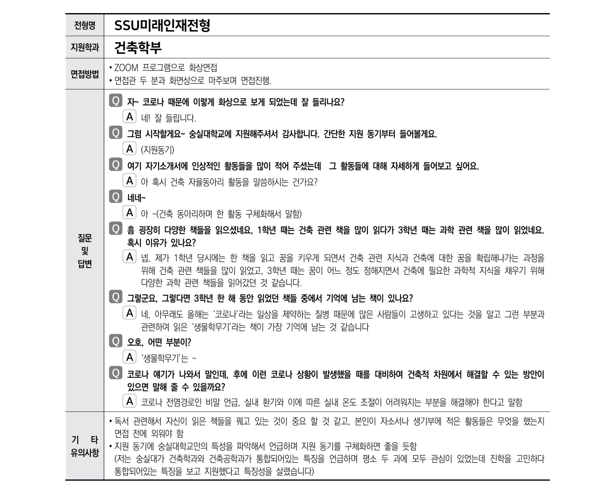 2021학년도 숭실대학교 면접 후기2 - 건축학부