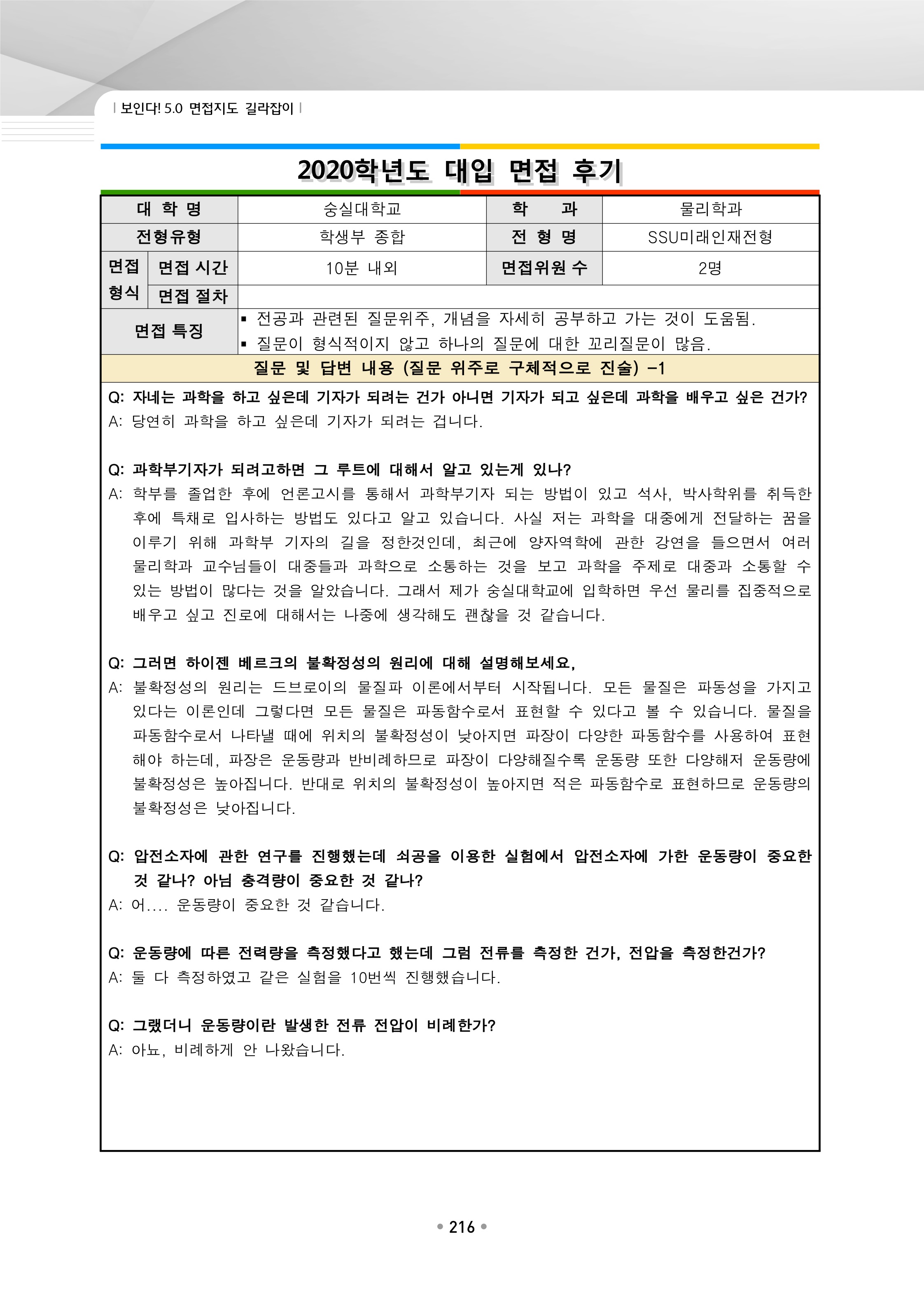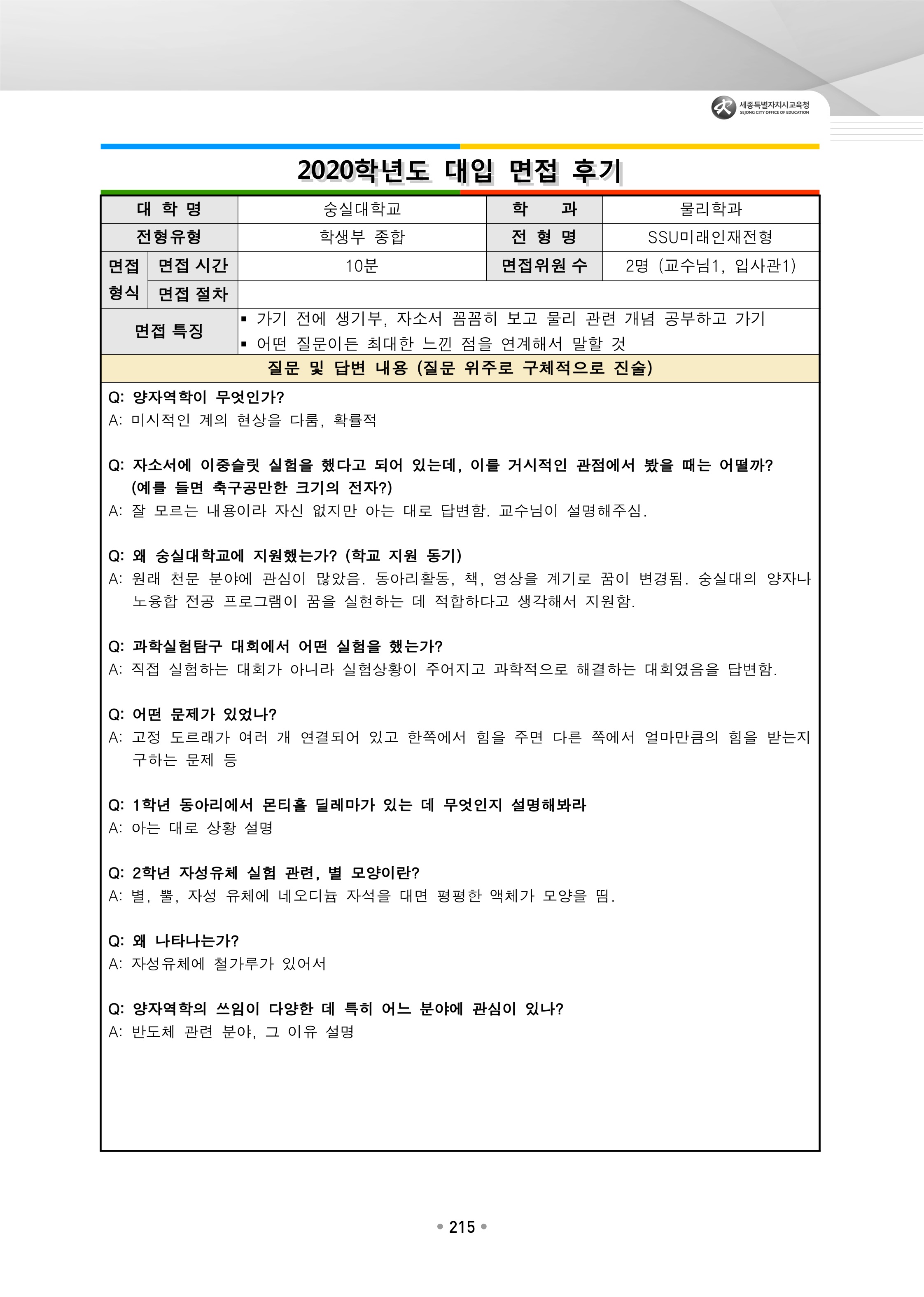 2021학년도 숭실대학교 면접 후기10 - 물리학과
