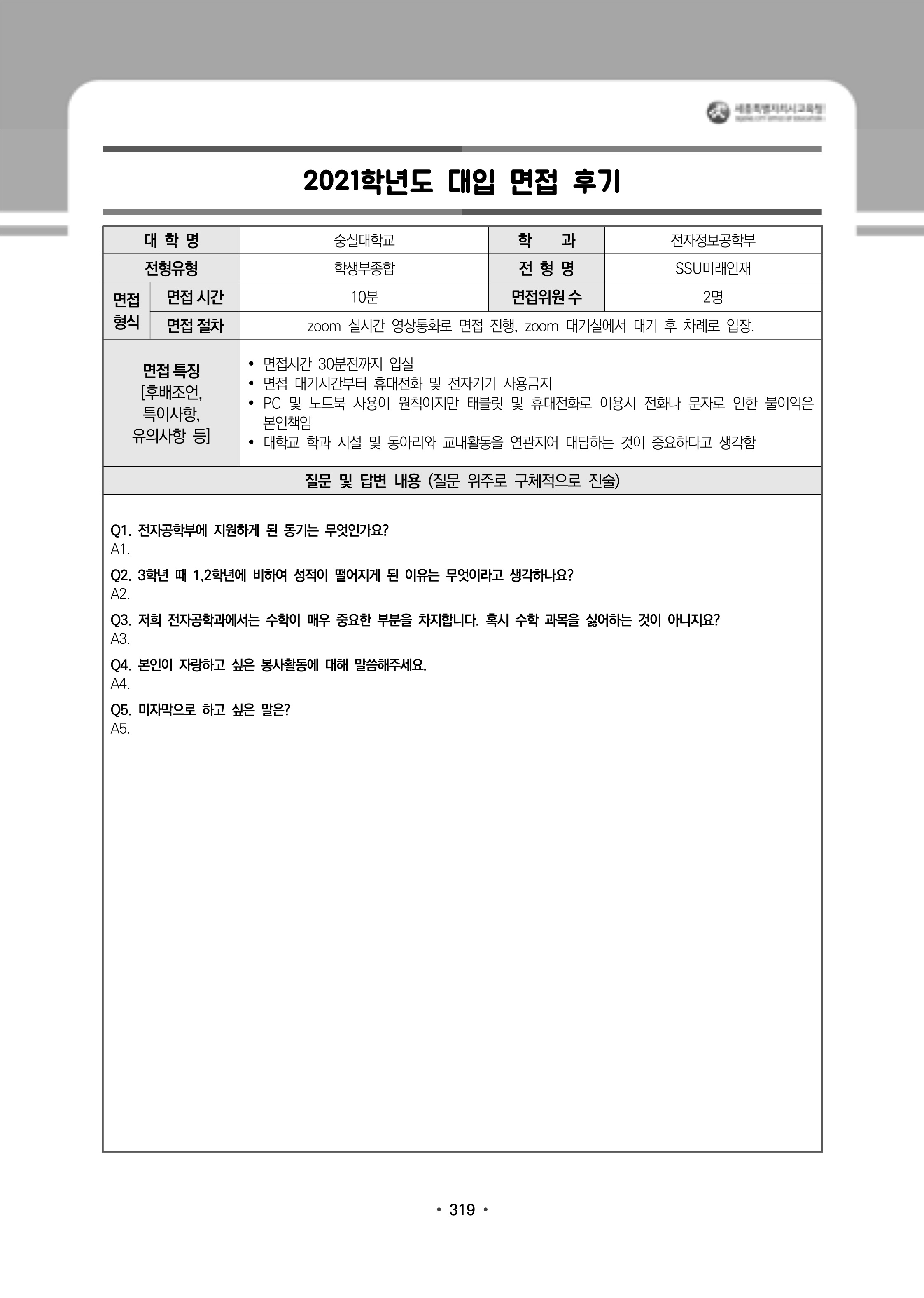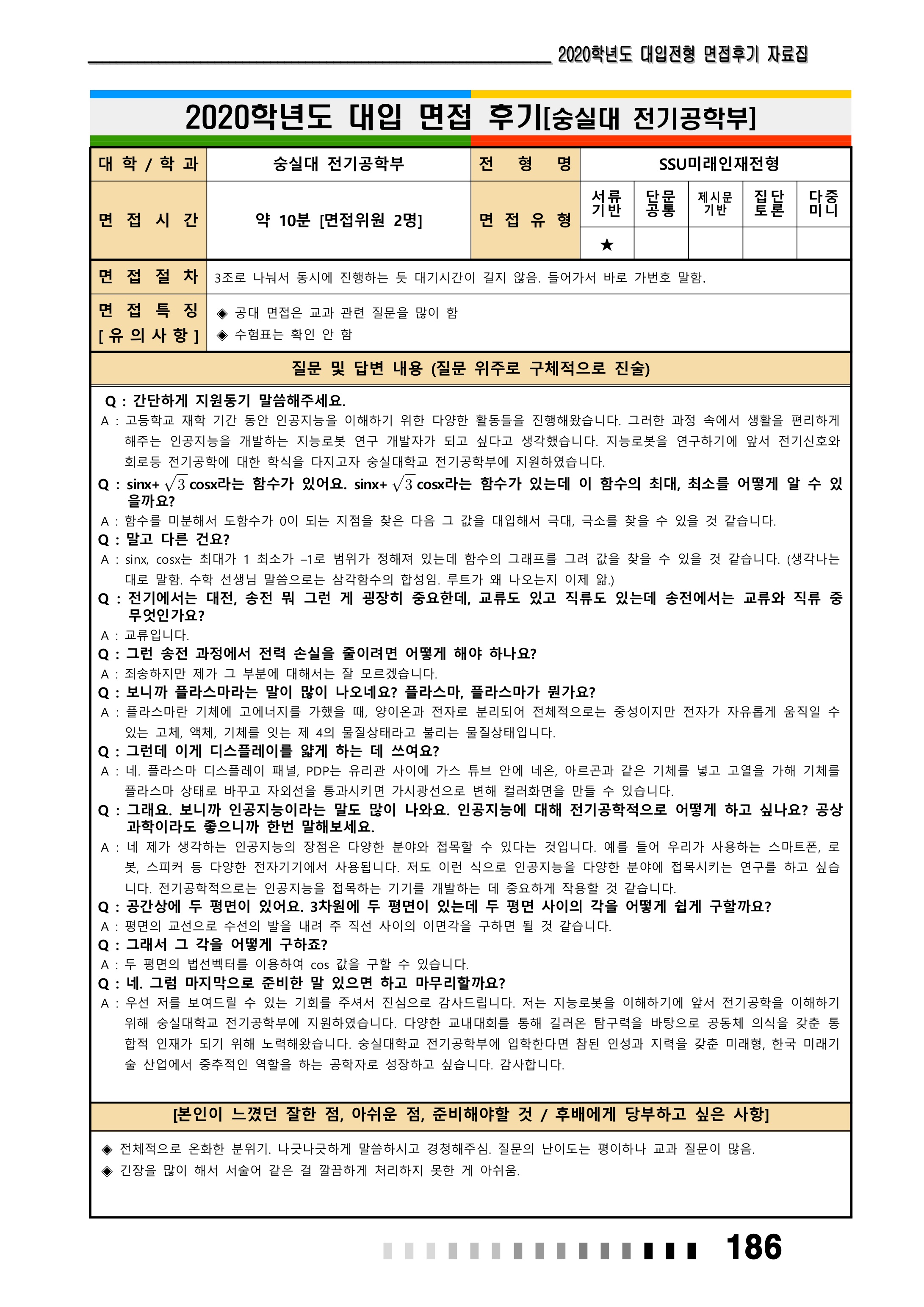 2021학년도 숭실대학교 면접 후기19 - 전기공학부 2021학년도 숭실대학교 면접 후기20 - 전자정보공학부