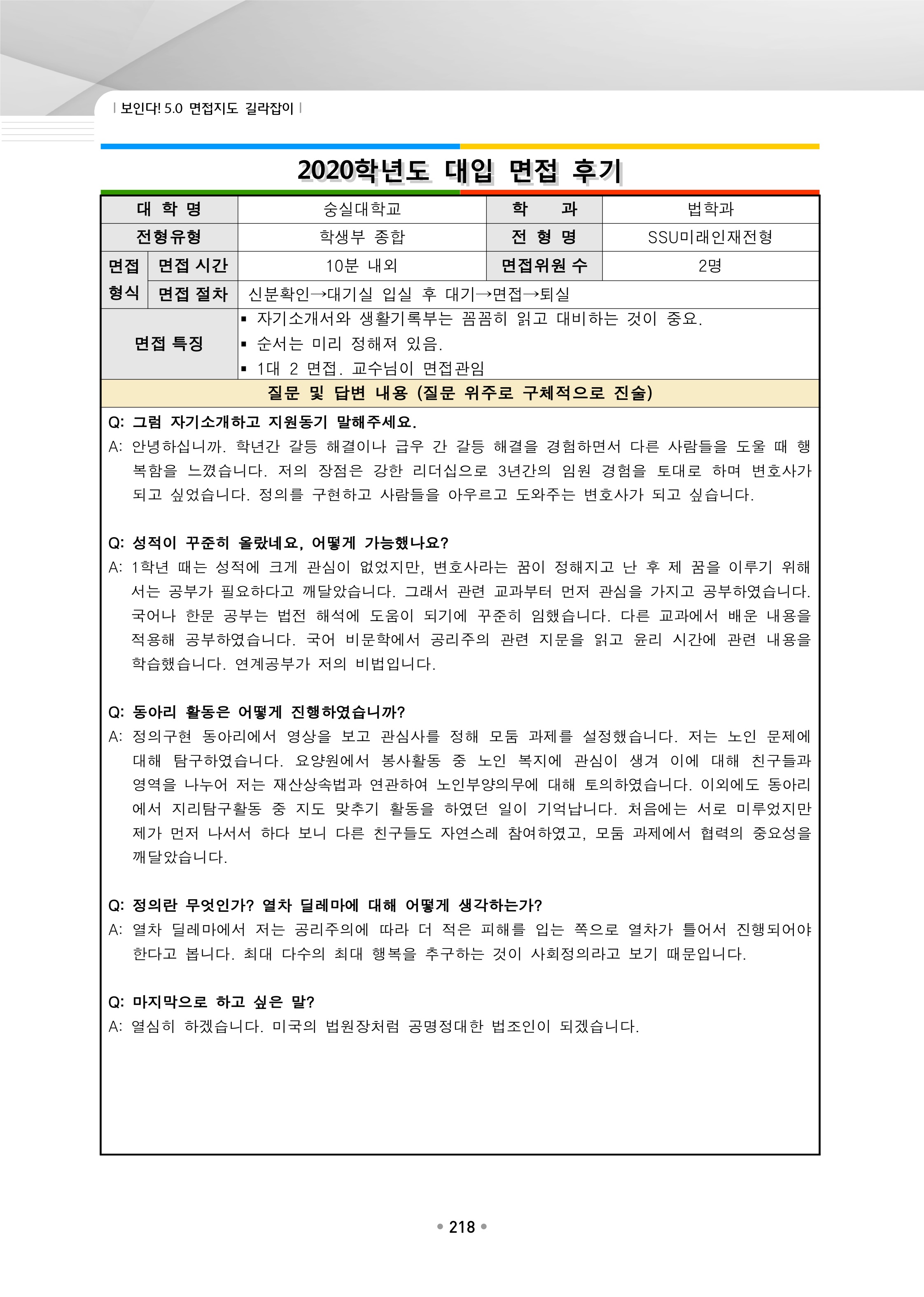 2021학년도 숭실대학교 면접 후기11 - 법학과 2021학년도 숭실대학교 면접 후기12 - 벤처중소기업학과