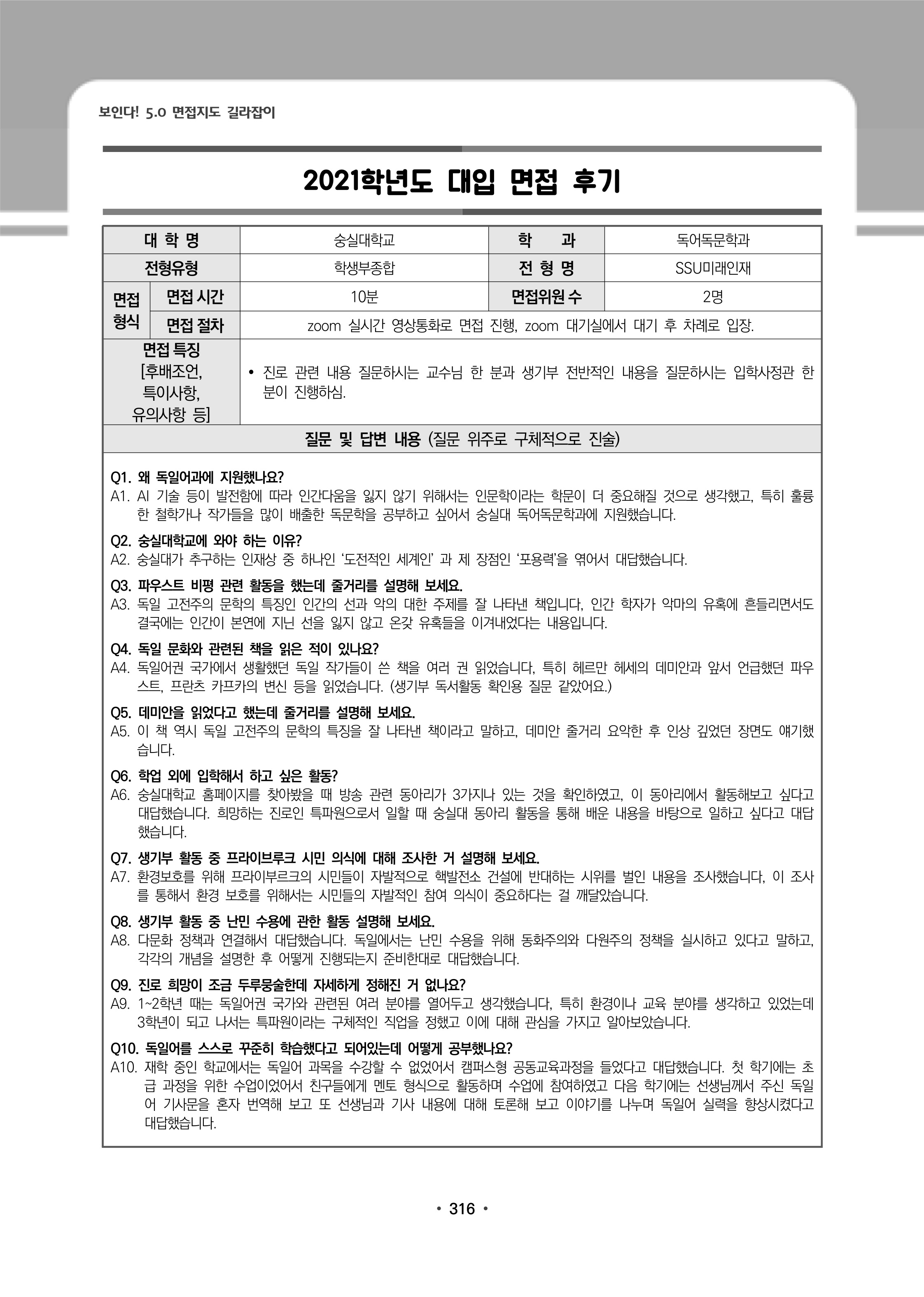 2021학년도 숭실대학교 면접 후기8 - 독어독문학과 2021학년도 숭실대학교 면접 후기9 - 물리학과