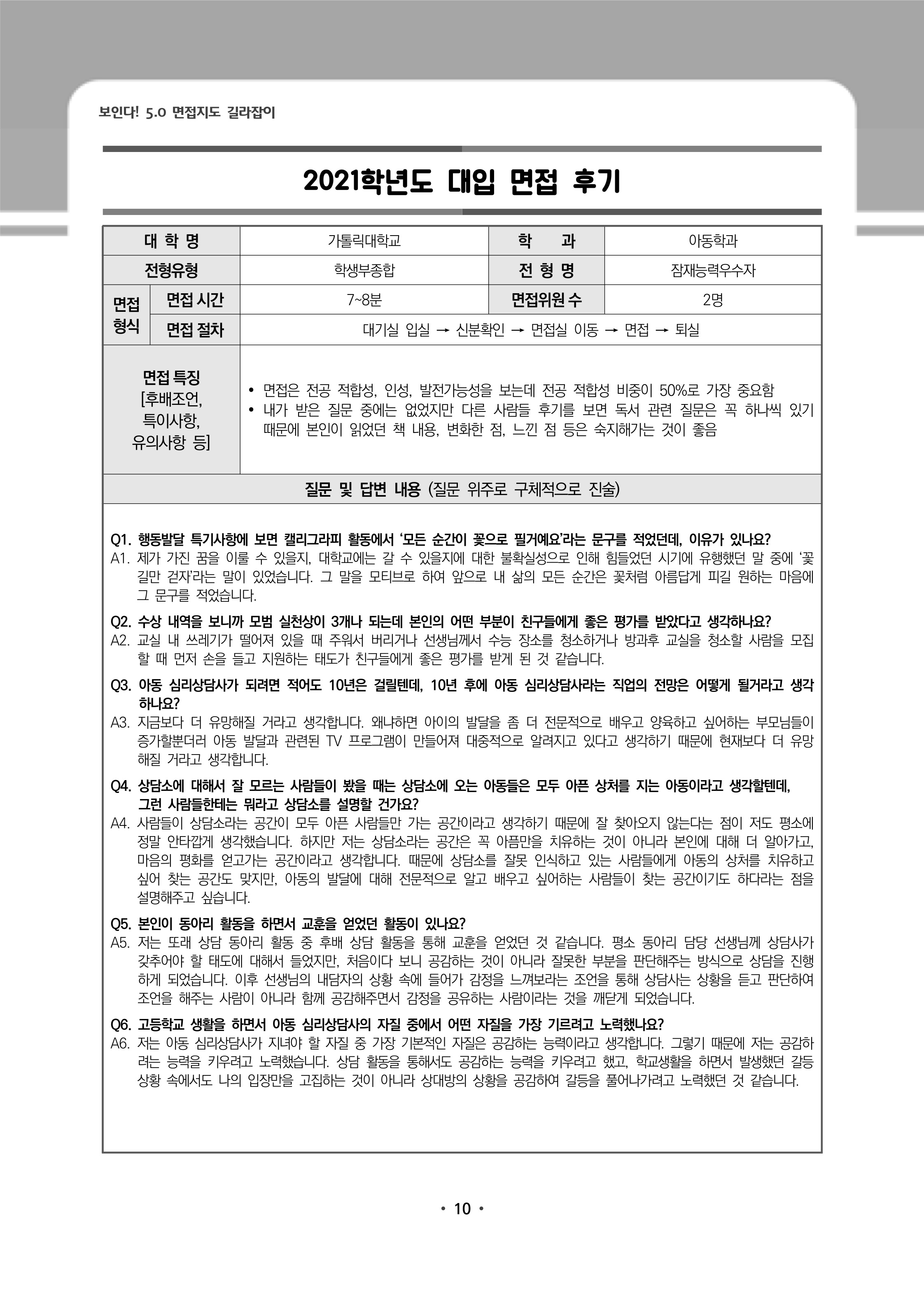 2021학년도 가톨릭대학교 면접 후기6 - 아동학과 2021학년도 가톨릭대학교 면접 후기7 - 에너지환경공학과
