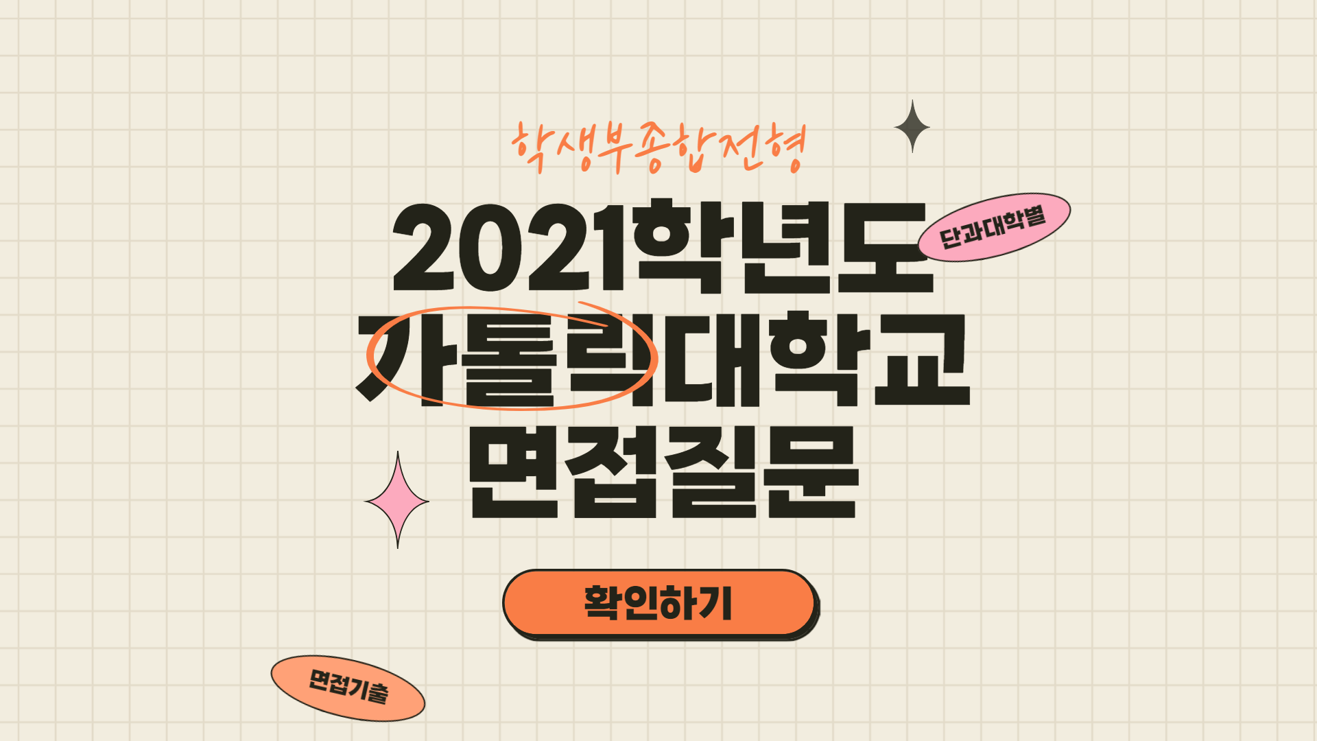 횐님들 안녕하세영! 오늘은 2022학년도 가톨릭대학교 수시전형에서 출제되었던 면접 질문에 대해서 알아볼 거예영. 올해 가톨릭대 학생부종합 전형 중에 잠재능력우수자전형, 가톨릭지도자추천