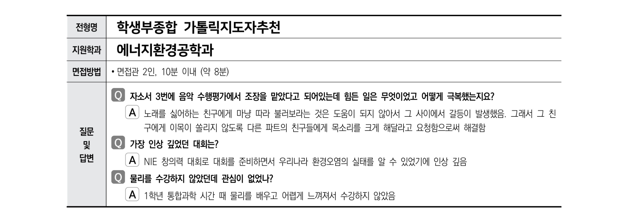 2021학년도 가톨릭대학교 면접 후기7 - 에너지환경공학과