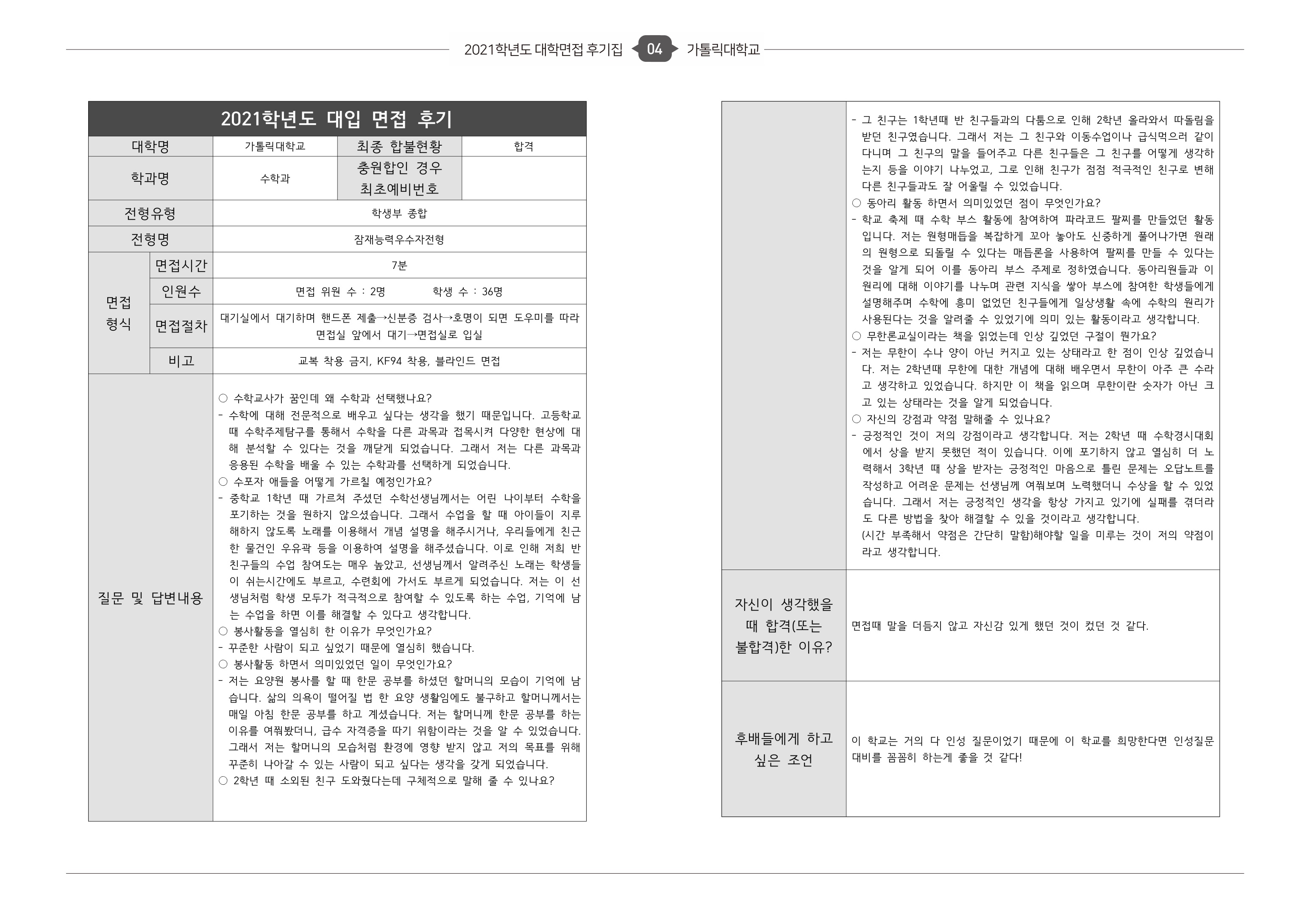 2021학년도 가톨릭대학교 면접 후기4 - 사회복지학과 2021학년도 가톨릭대학교 면접 후기5 - 수학과