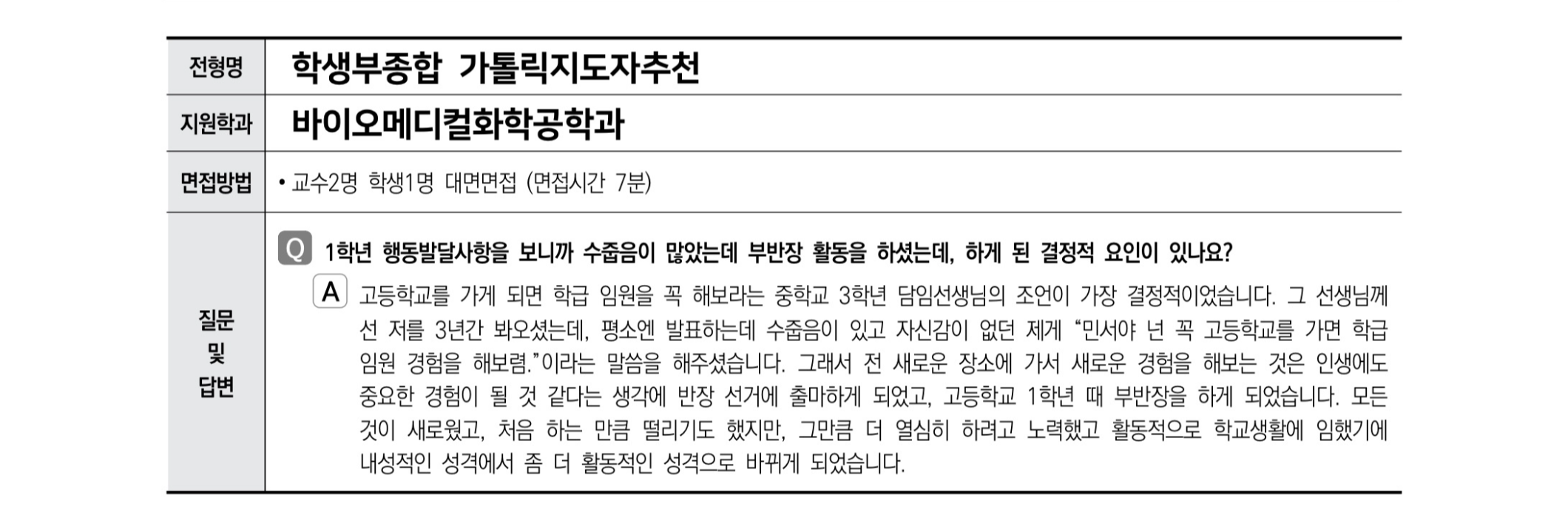 2021학년도 가톨릭대학교 면접 후기3 - 바이오메디컬화학공학과