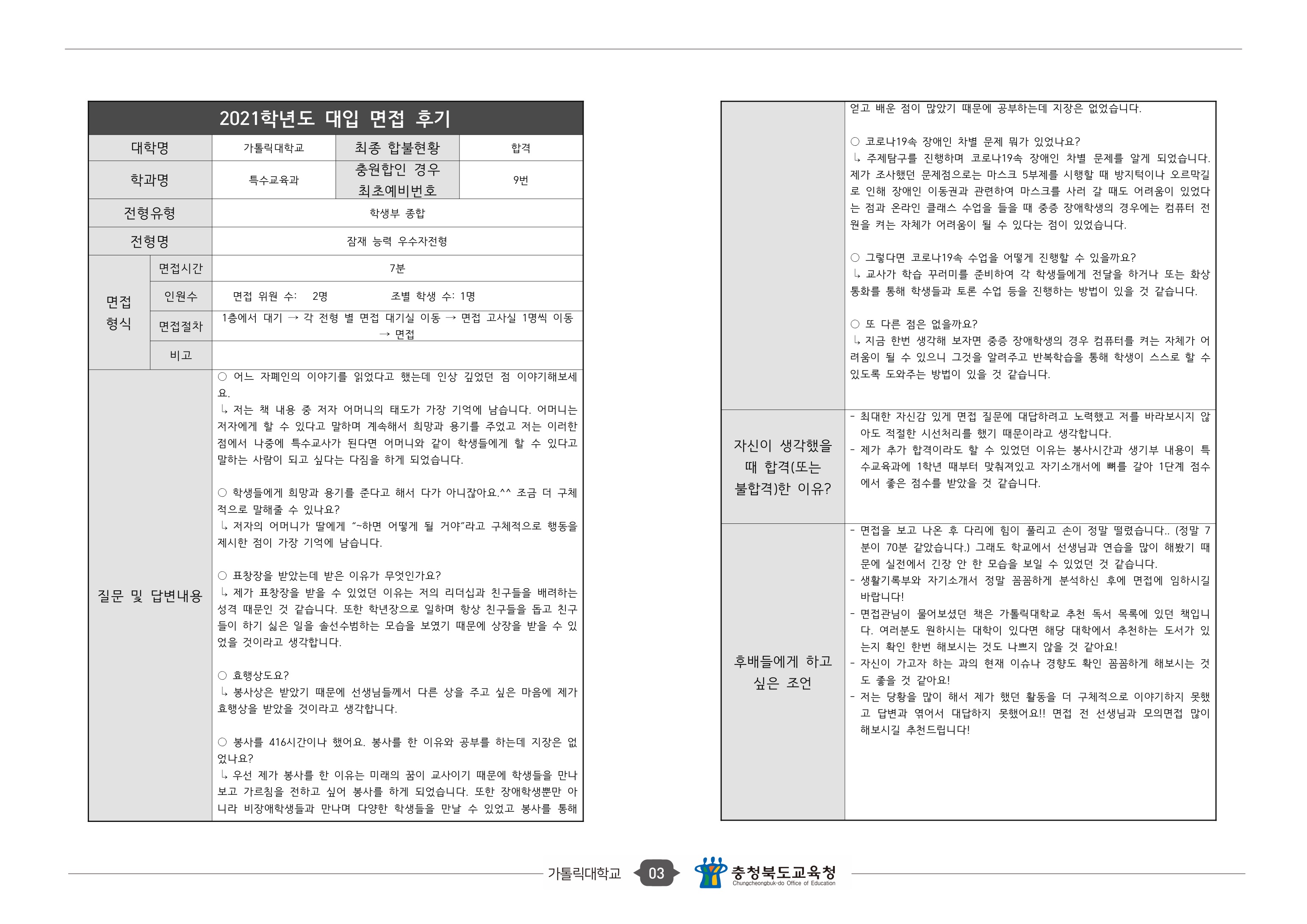 2021학년도 가톨릭대학교 면접 후기9 - 의예과 2021학년도 가톨릭대학교 면접 후기10 - 특수교육과