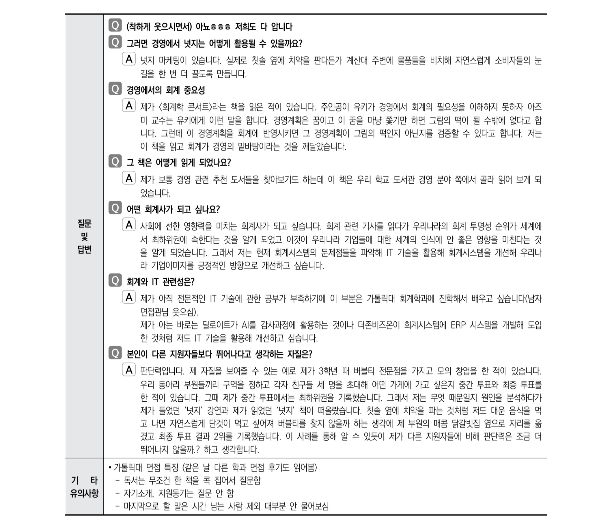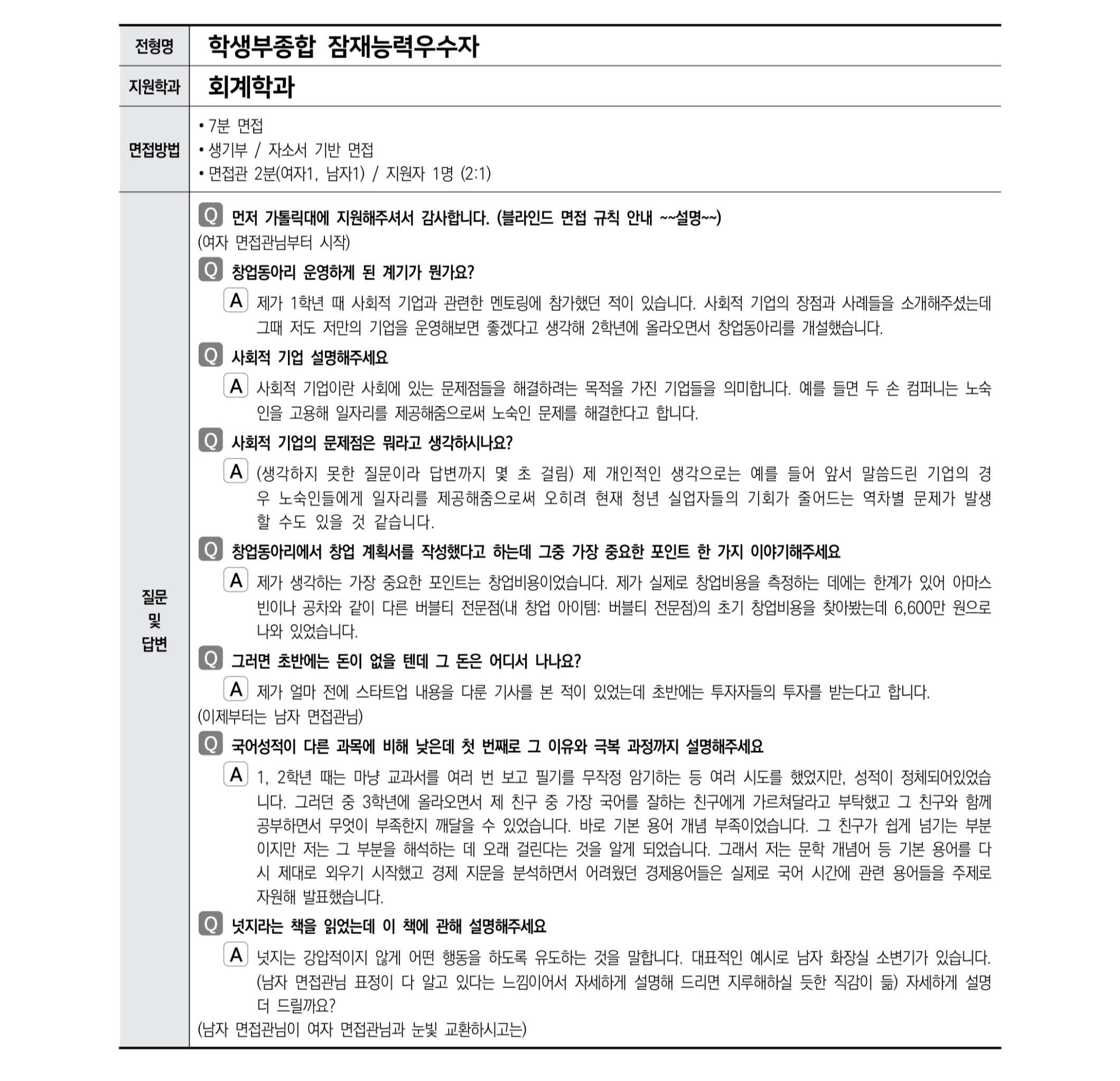 2021학년도 가톨릭대학교 면접 후기12 - 회계학과