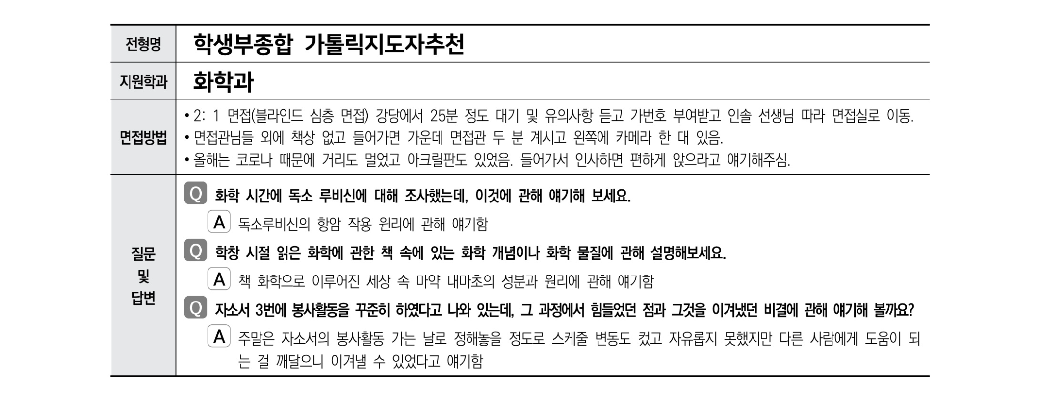 2021학년도 가톨릭대학교 면접 후기11 - 화학과