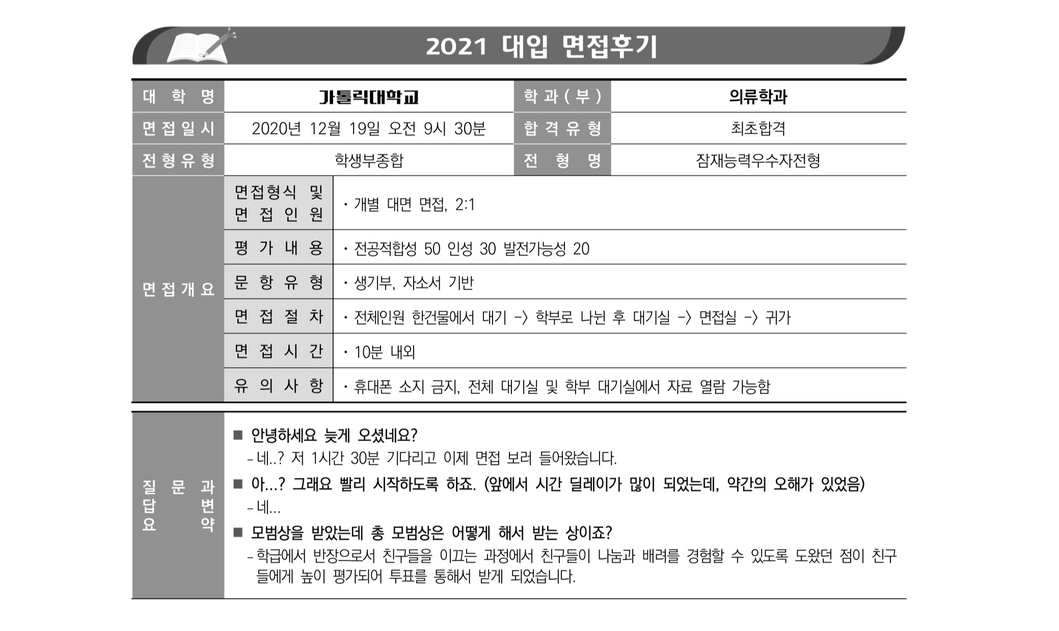 2021학년도 가톨릭대학교 면접 후기9 - 의예과