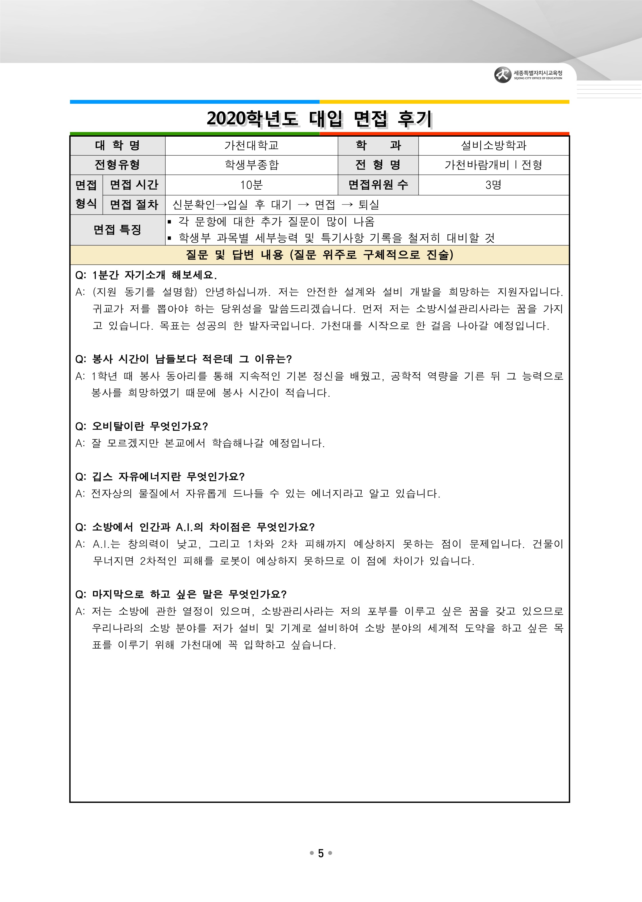 2021학년도 가천대학교 면접 후기12 - 설비소방학과 2021학년도 가천대학교 면접 후기13 - 운동재활복지학과