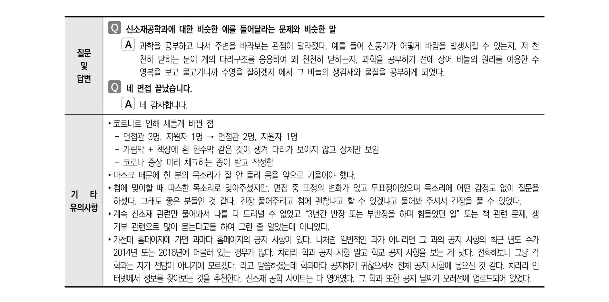 2021학년도 가천대학교 면접 후기25 - 컴퓨터공학과 2021학년도 가천대학교 면접 후기26 - 화공생명공학과