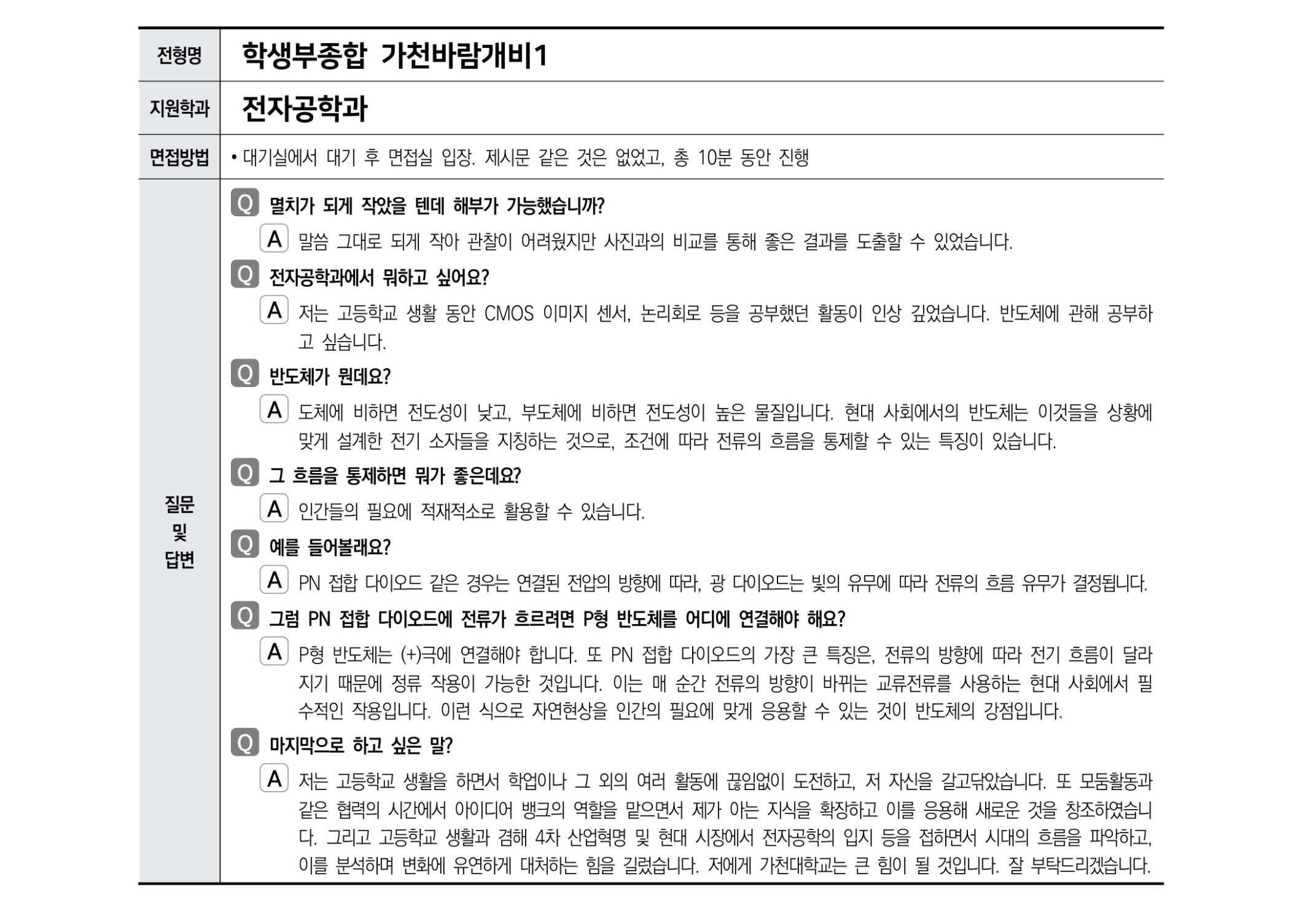 2021학년도 가천대학교 면접 후기22 - 전자공학과 2021학년도 가천대학교 면접 후기23 - 컴퓨터공학과