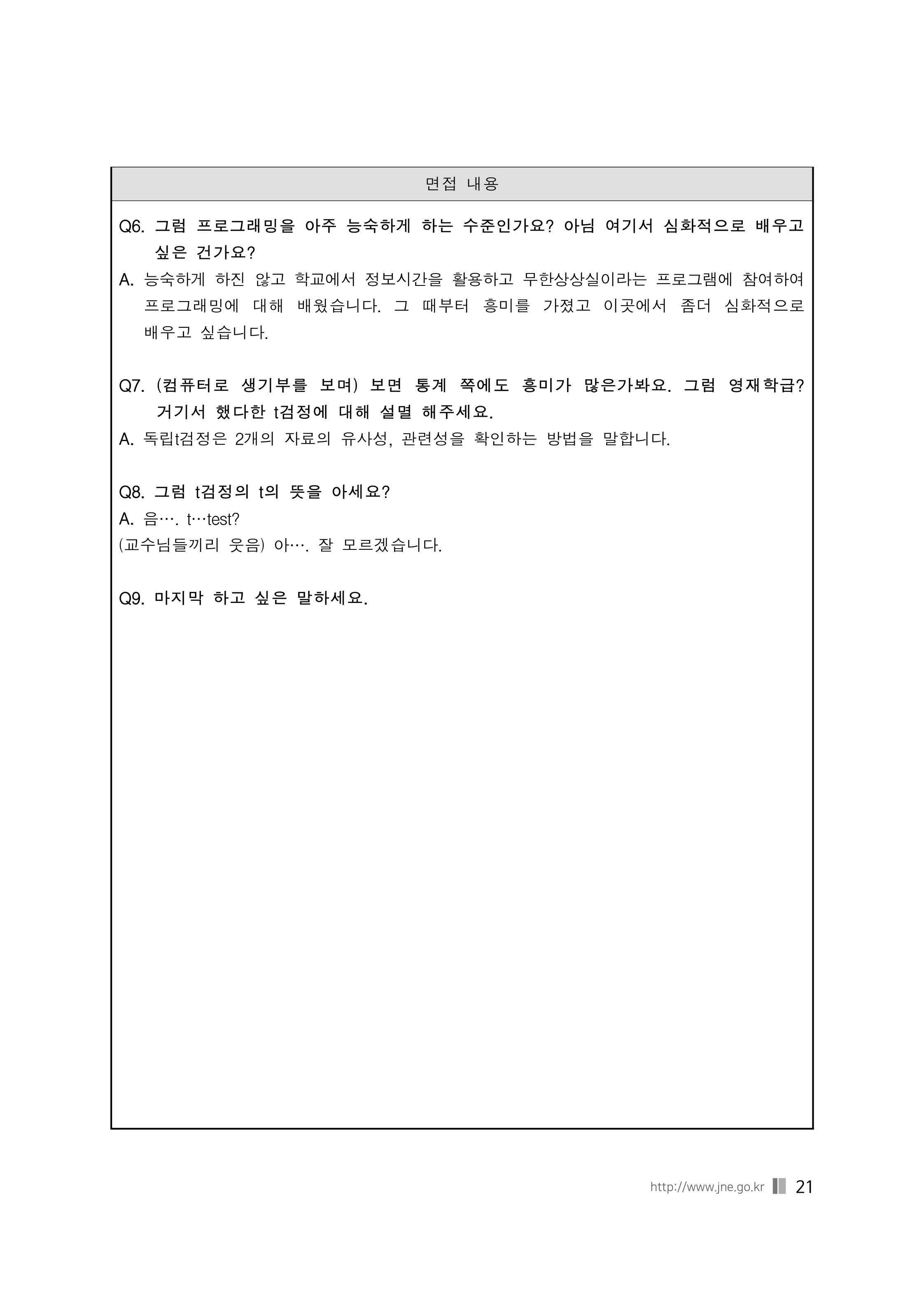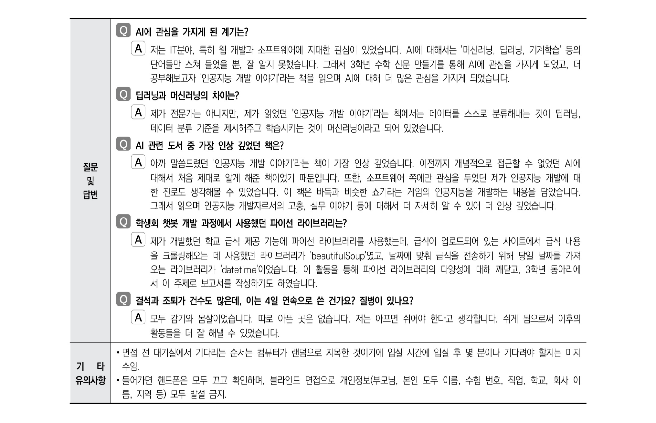 학교 및 기업체 관계자 면접2021학년도 수시 면접 기출 사례