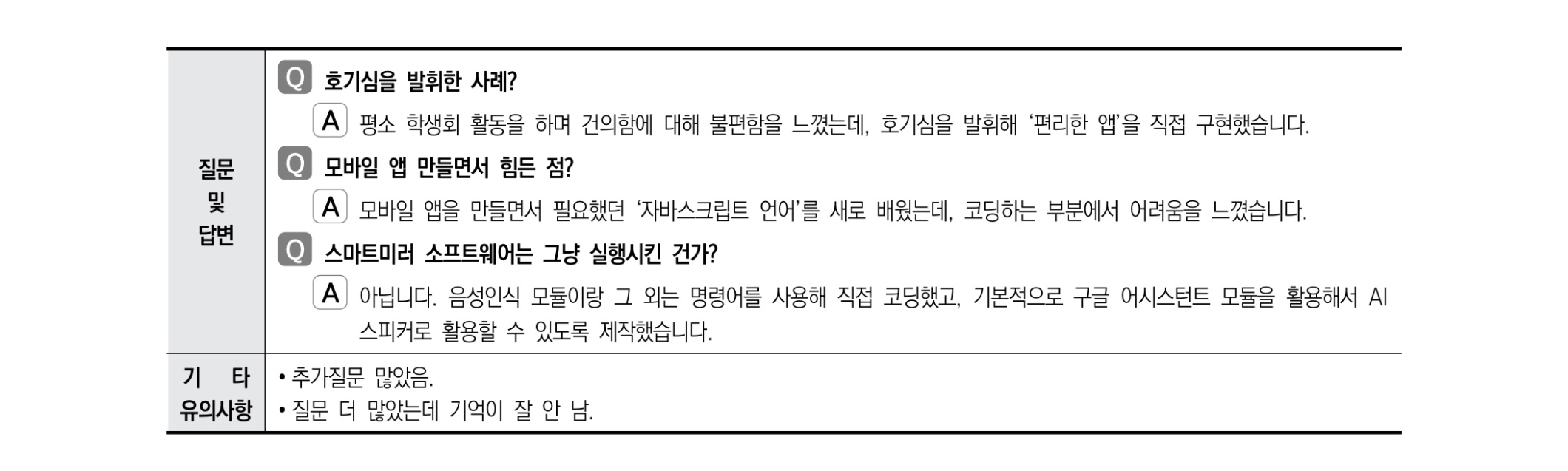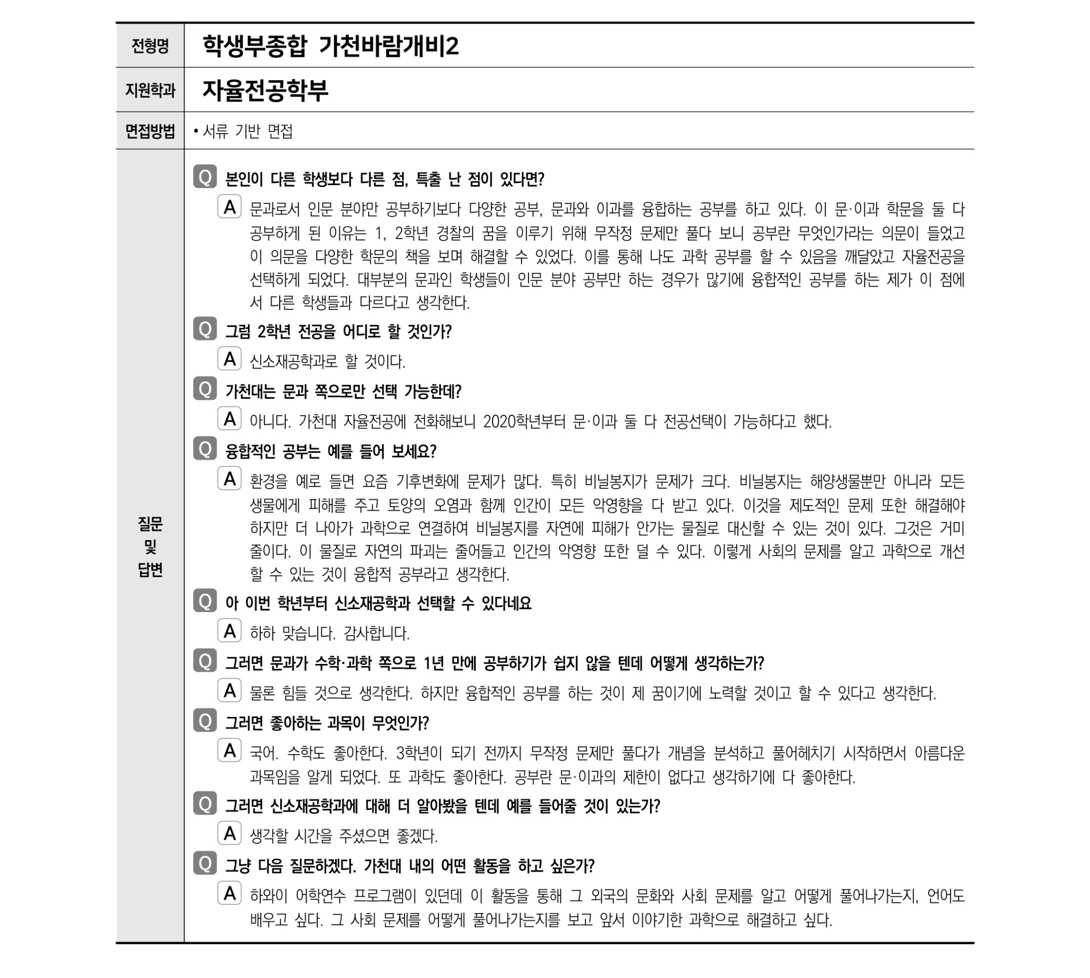 학교생활기록부와 자기소개서에 대한 질문 및 기타 질문 → 평가 기준에 따라 종합적 정성평가