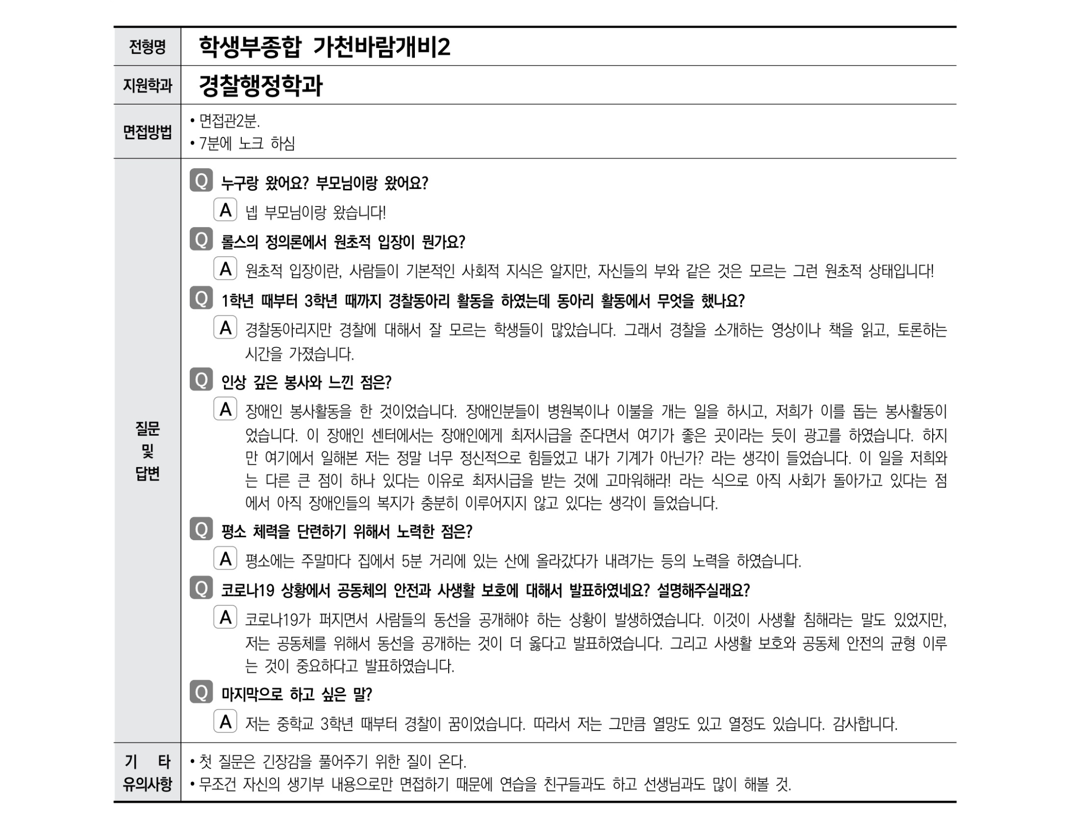 2021학년도 가천대학교 면접 후기5 - 경찰행정학과 2021학년도 가천대학교 면접 후기6 - 관광경영학과