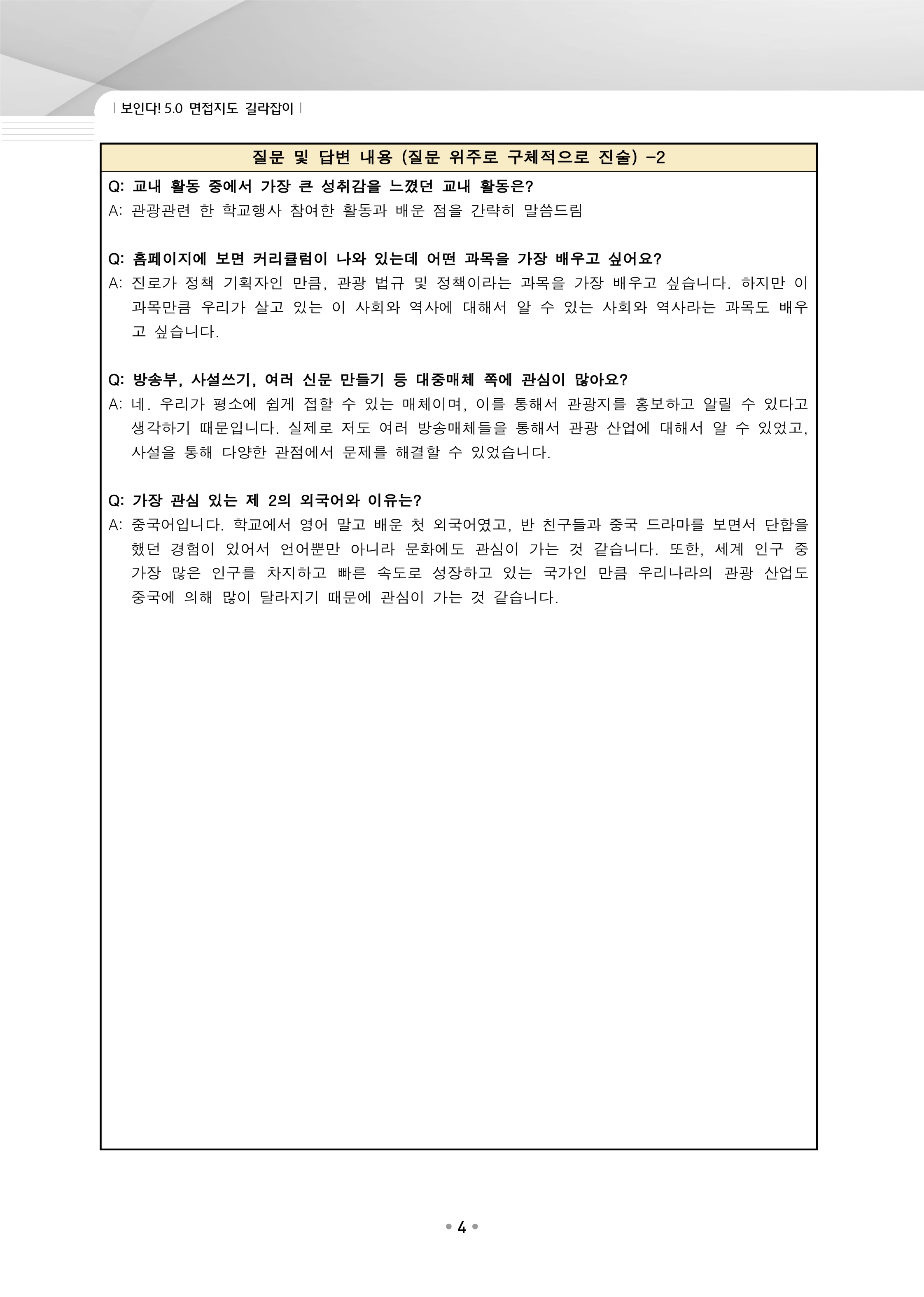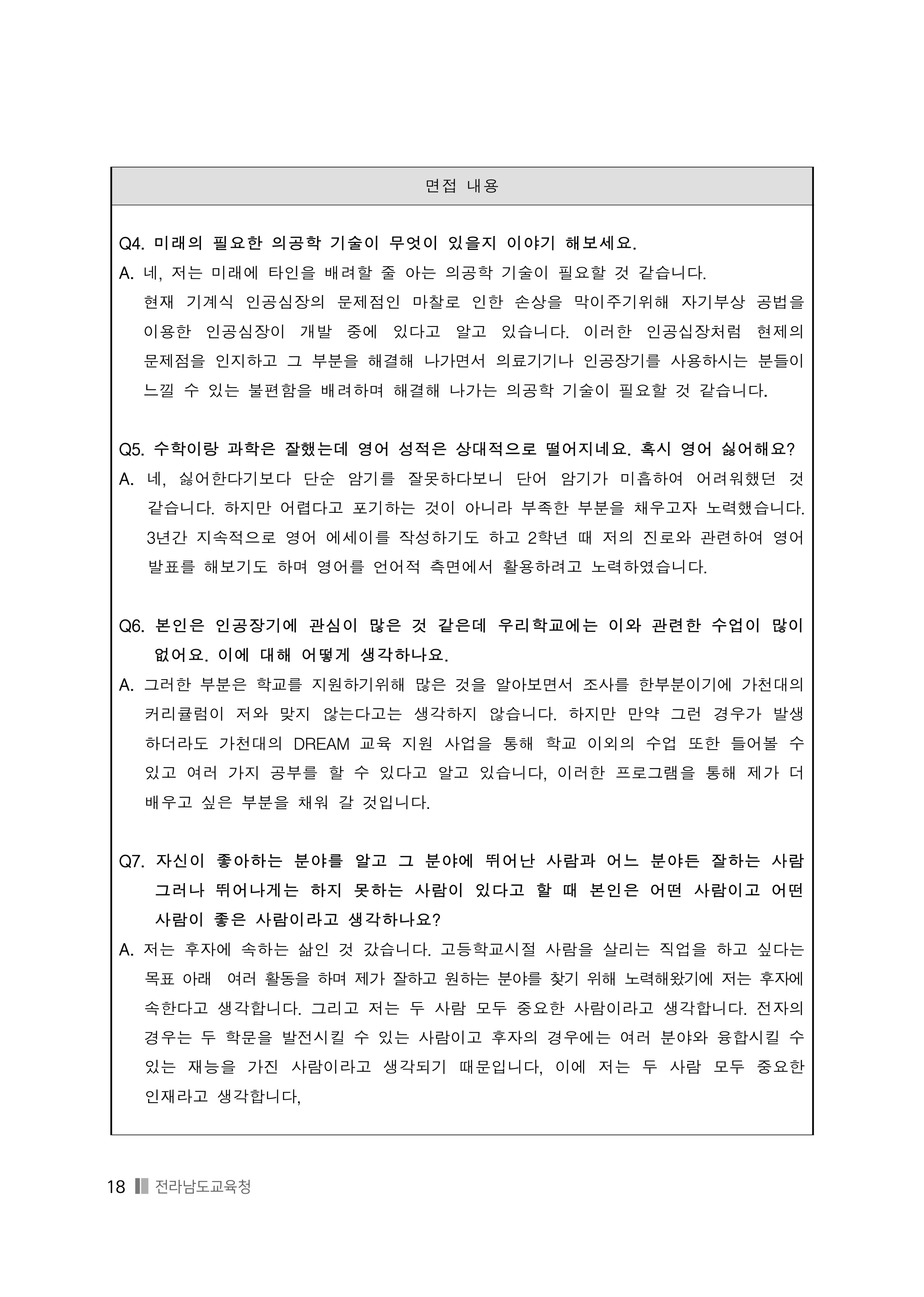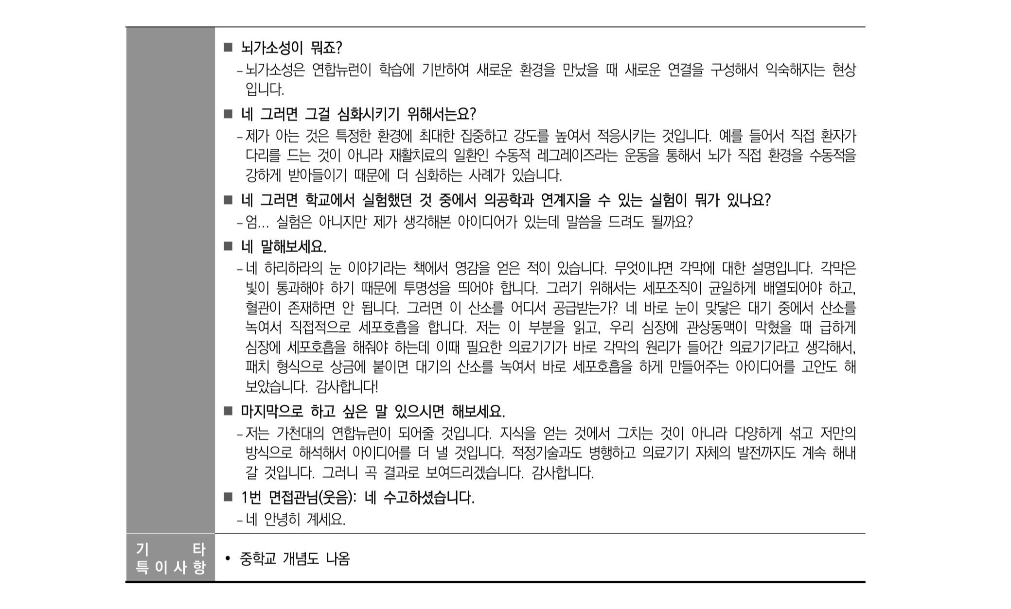 인성, 발전가능성, 전공적합성, 의사소통능력