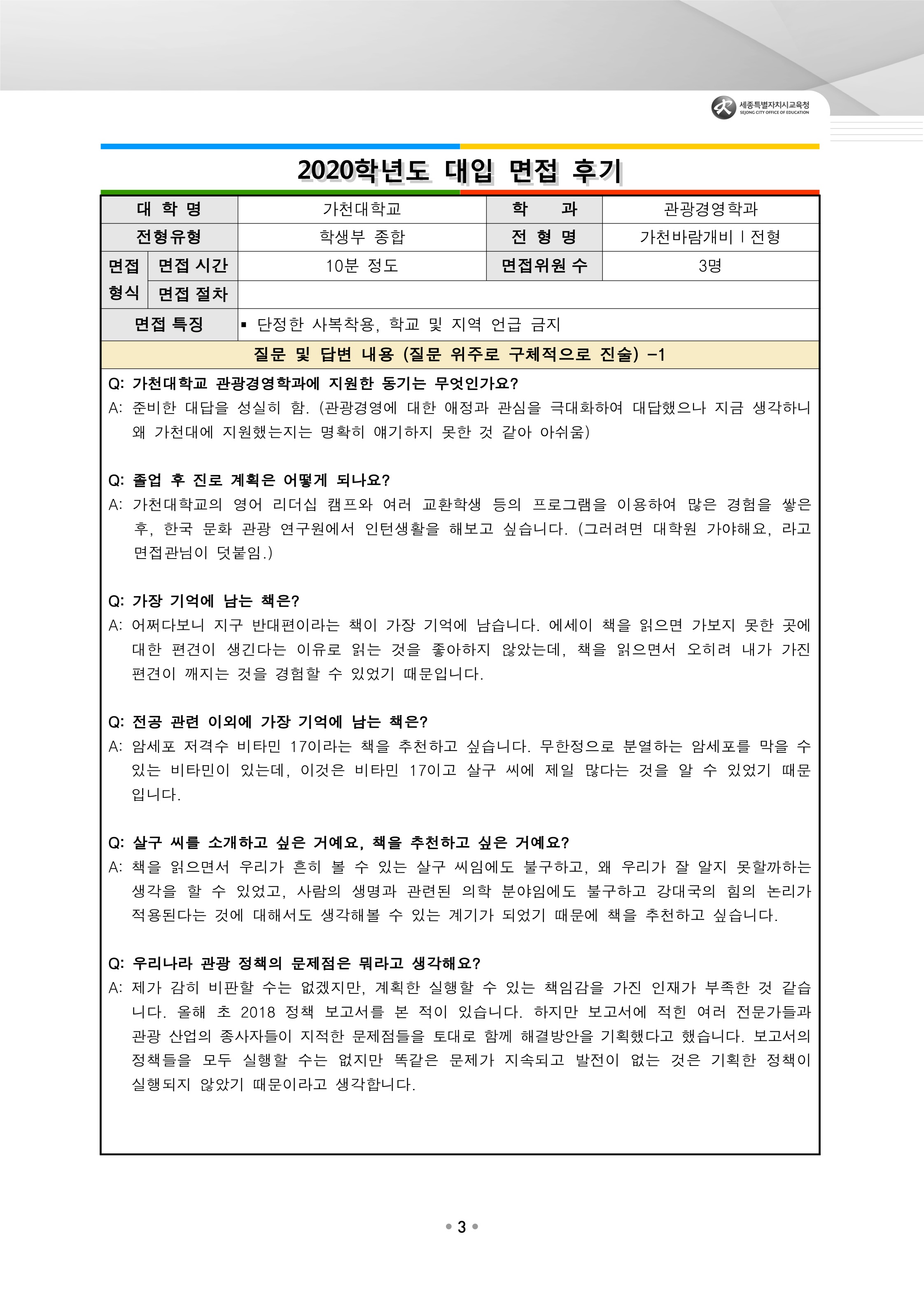 2021학년도 가천대학교 면접 후기6 - 관광경영학과