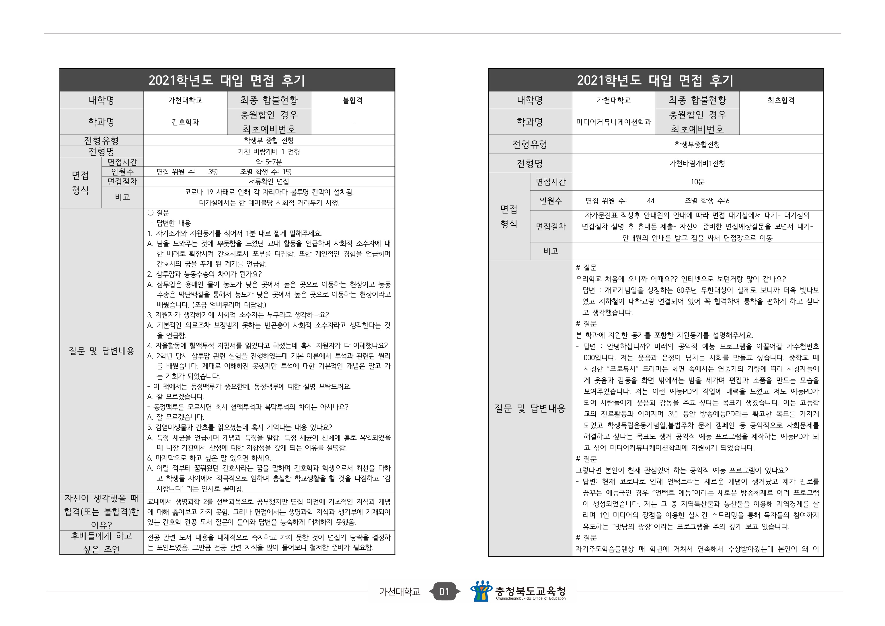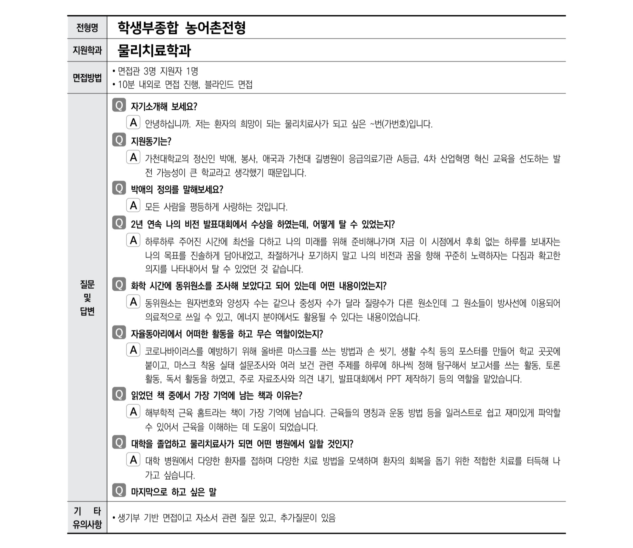 2021학년도 가천대학교 면접 후기8 - 물리치료학과 2021학년도 가천대학교 면접 후기9 - 미디어커뮤니케이션학과