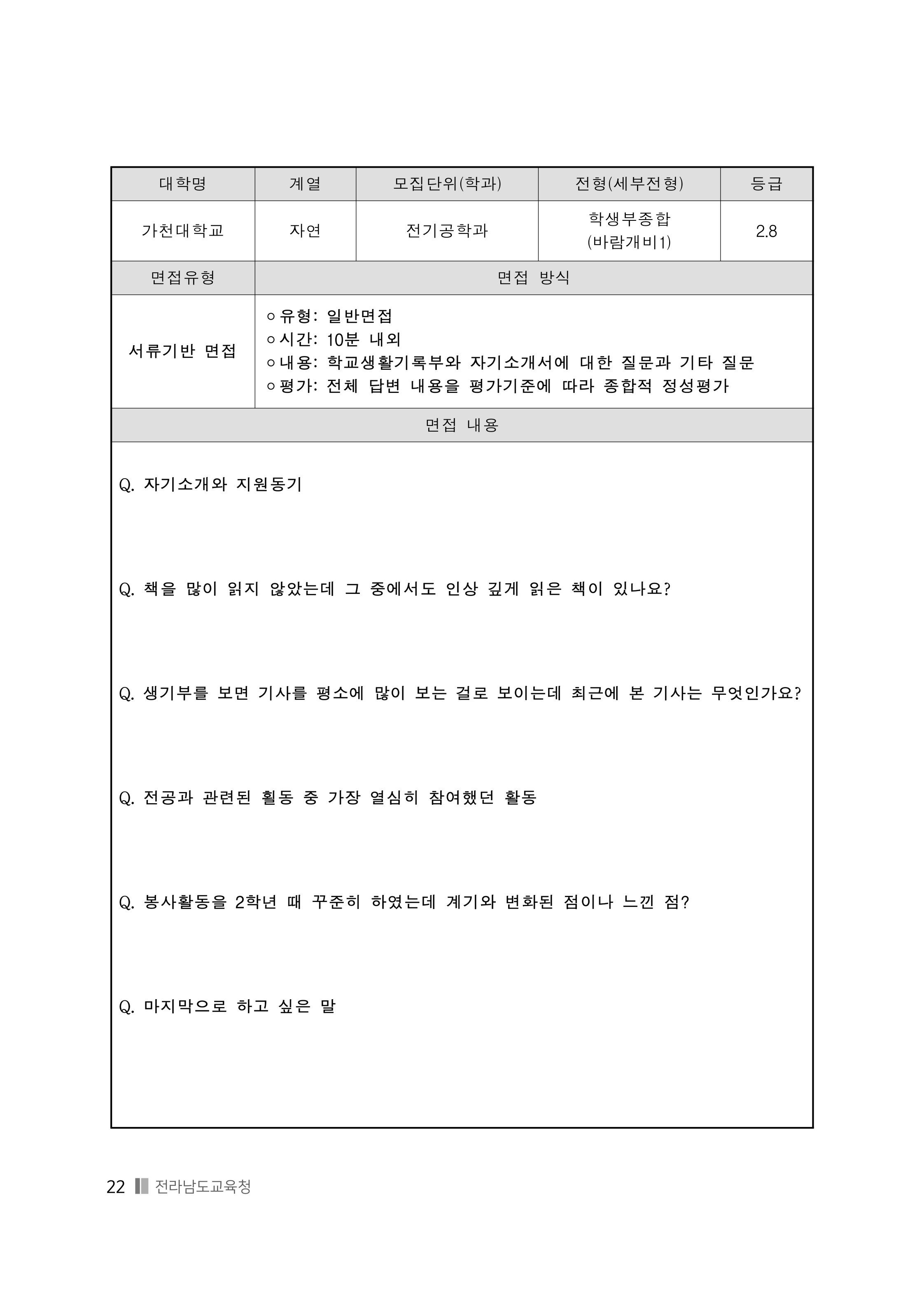 2021학년도 가천대학교 면접 후기21 - 전기공학과 2021학년도 가천대학교 면접 후기22 - 전자공학과