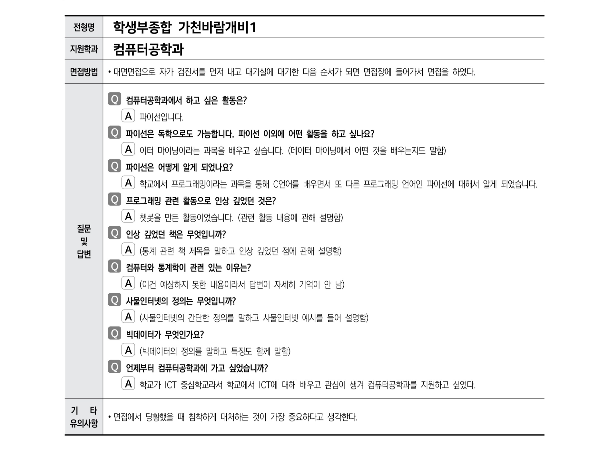 2021학년도 가천대학교 면접 후기23 - 컴퓨터공학과 2021학년도 가천대학교 면접 후기24 - 컴퓨터공학과