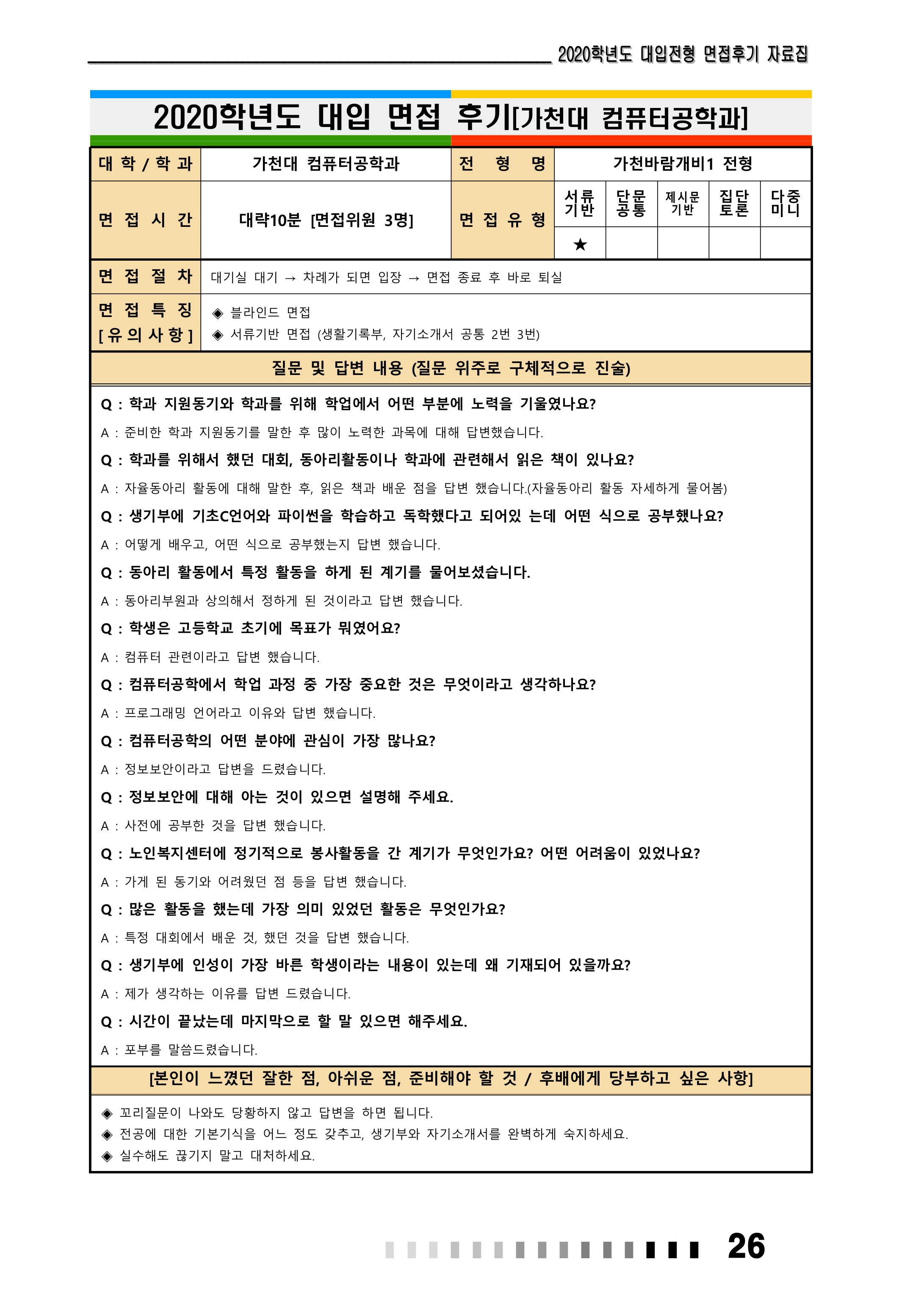 2021학년도 가천대학교 면접 후기25 - 컴퓨터공학과