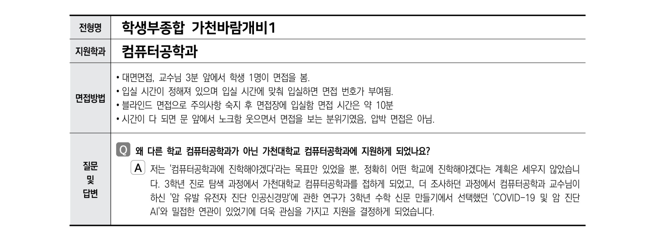 가천대학교 AI·소프트웨어학부2021학년도 가천대학교 면접 전형 분석