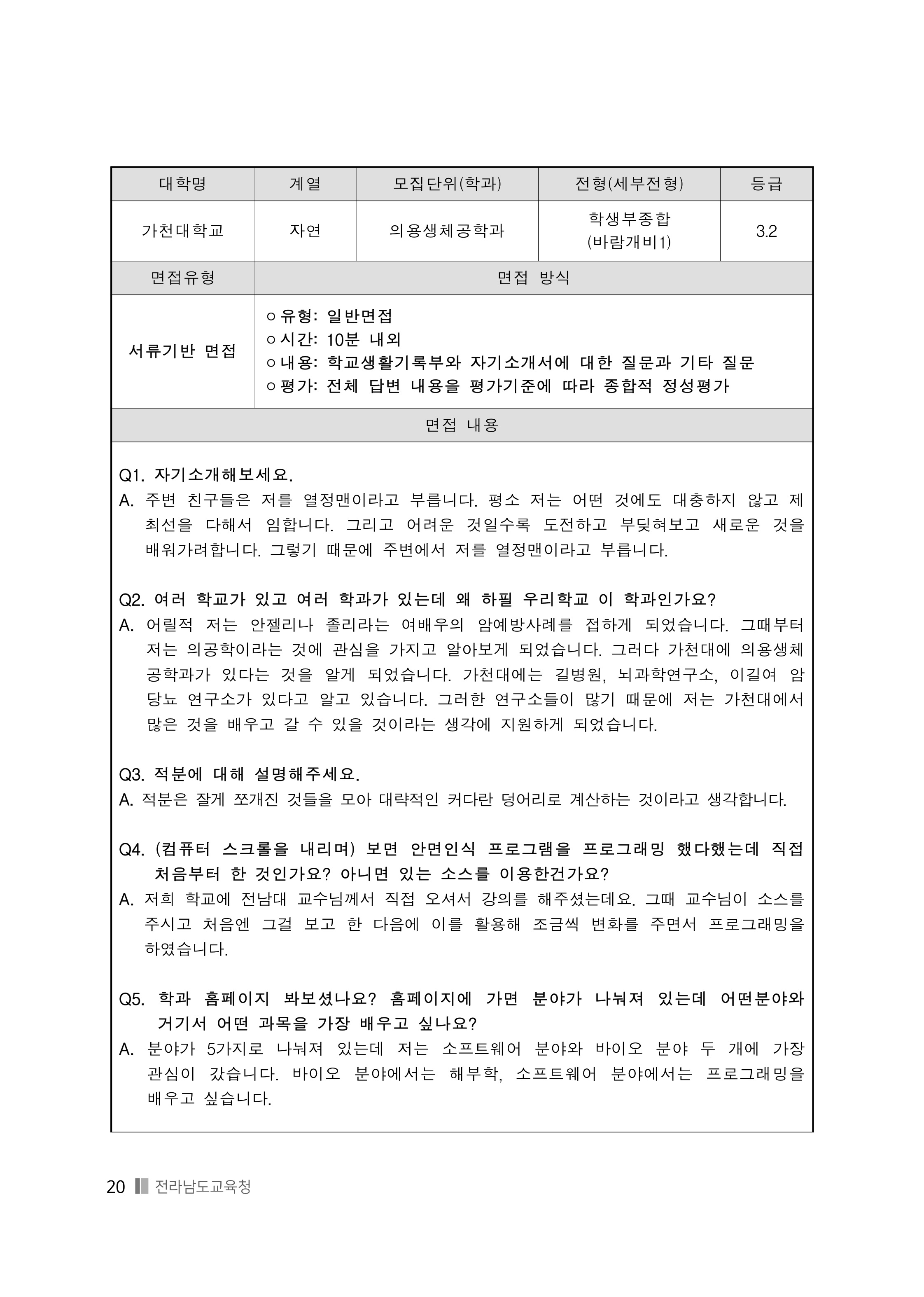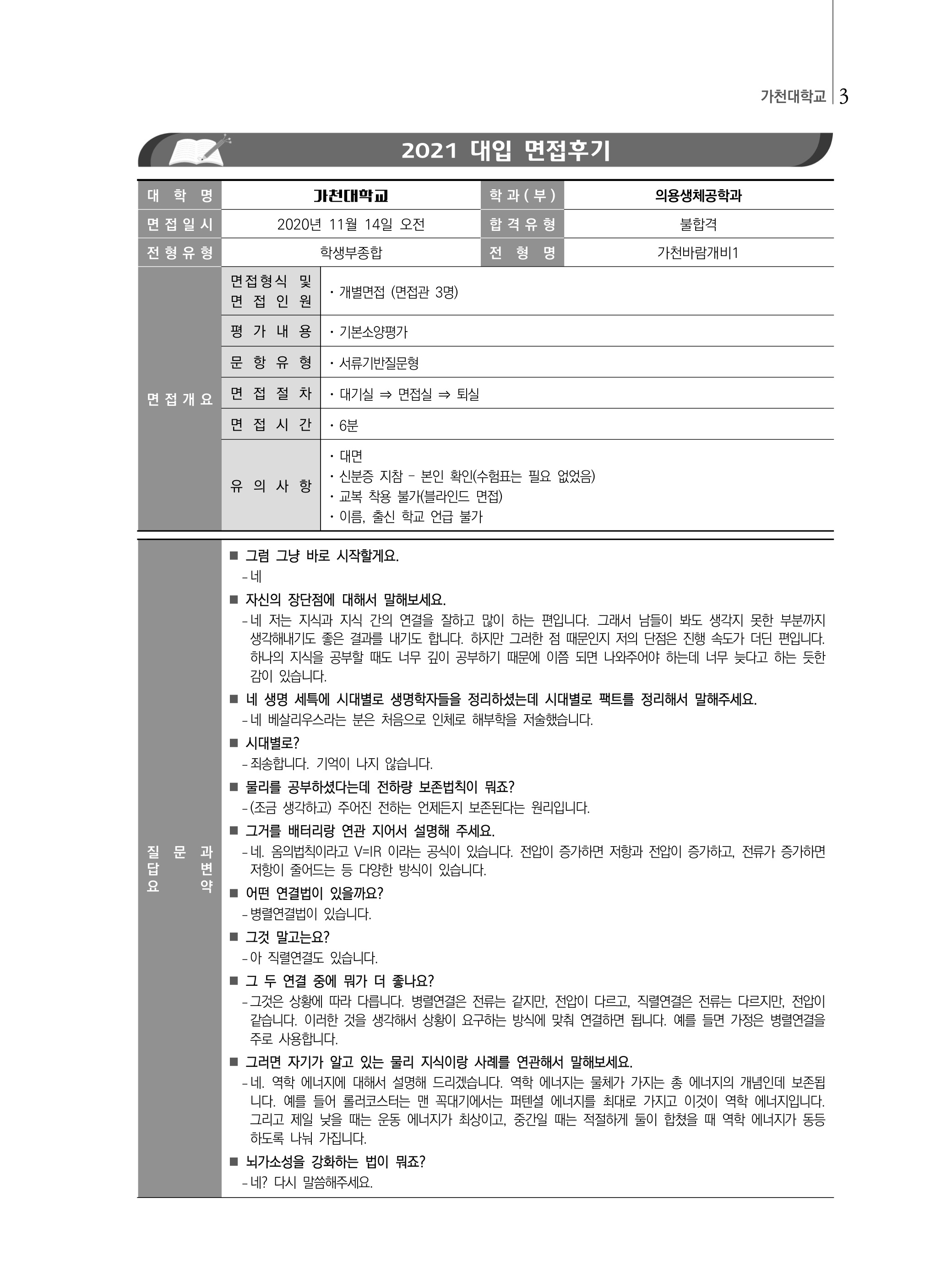 2021학년도 가천대학교 면접 후기15 - 의용생체공학과