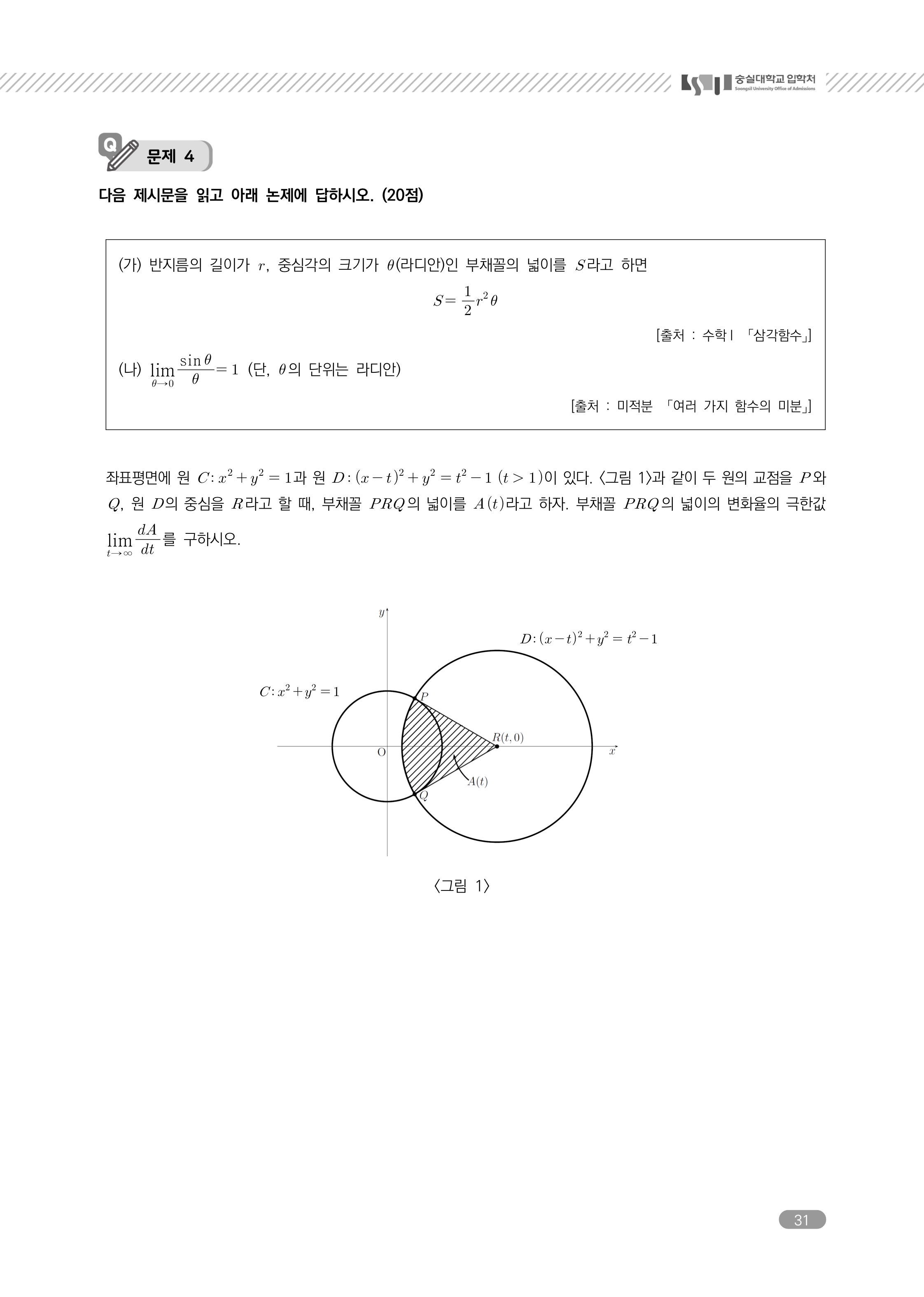 2021학년도 숭실대학교 수시 논술고사 기출문제 (자연1)